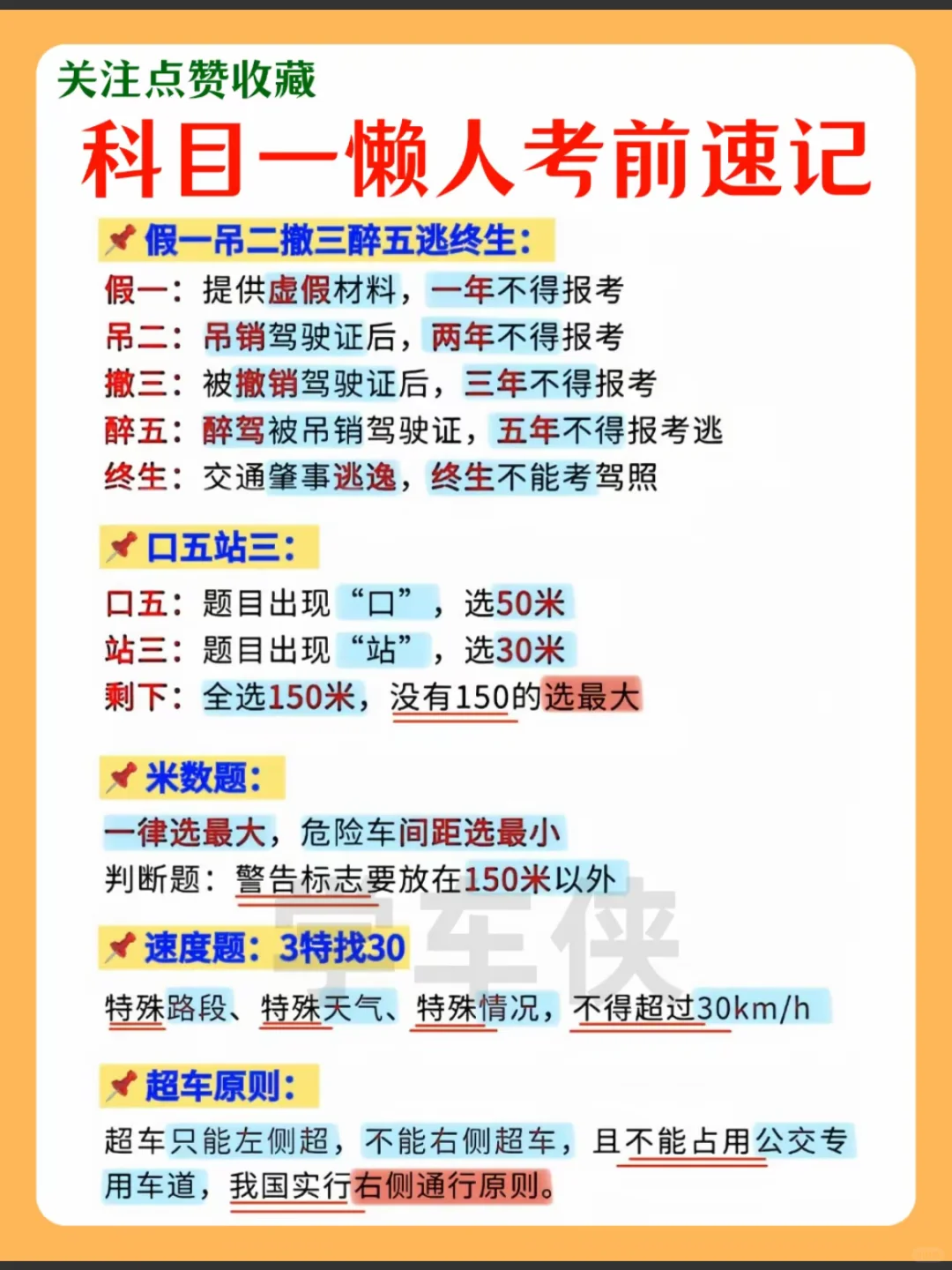 科目一懒人考前速记