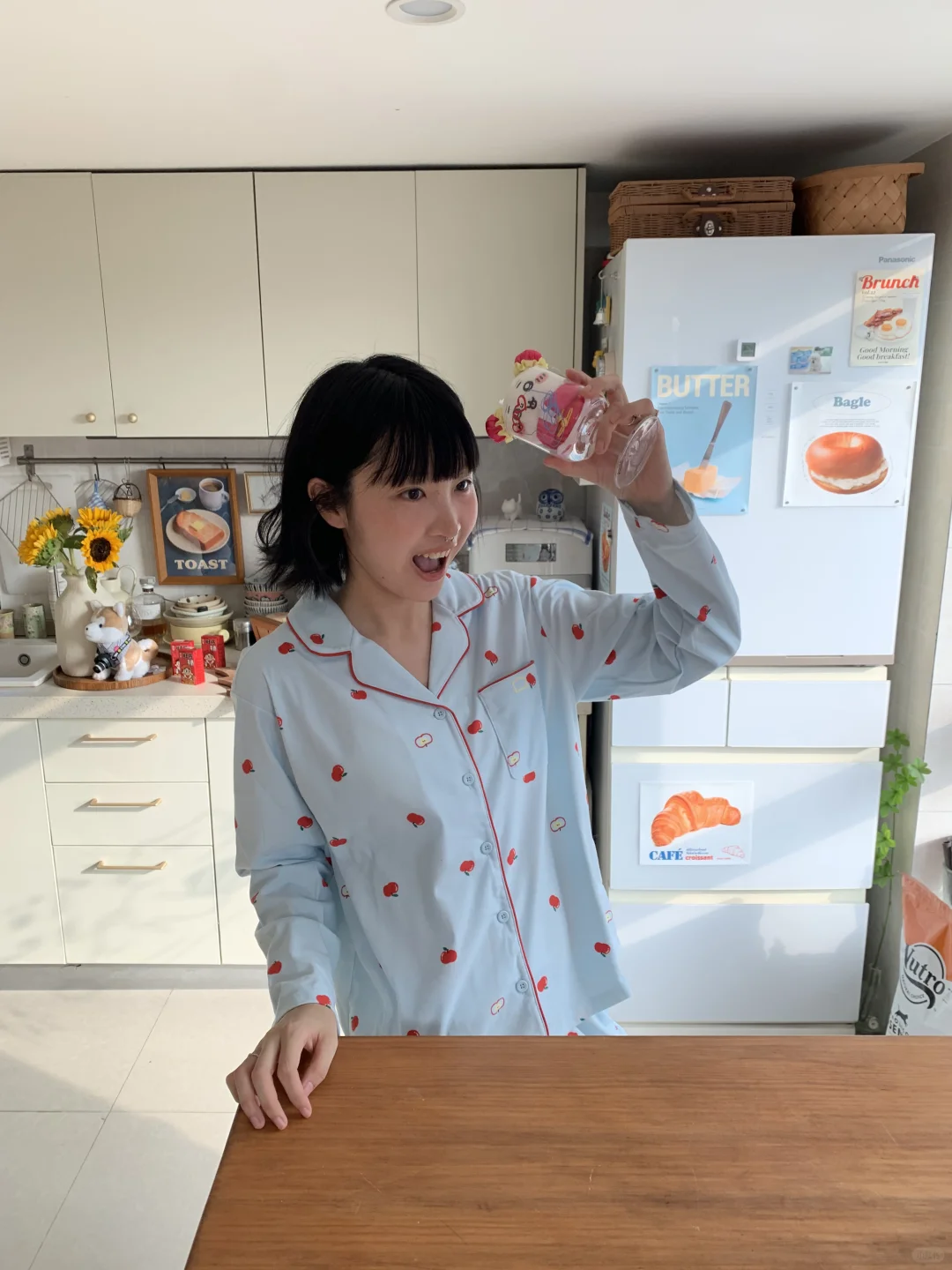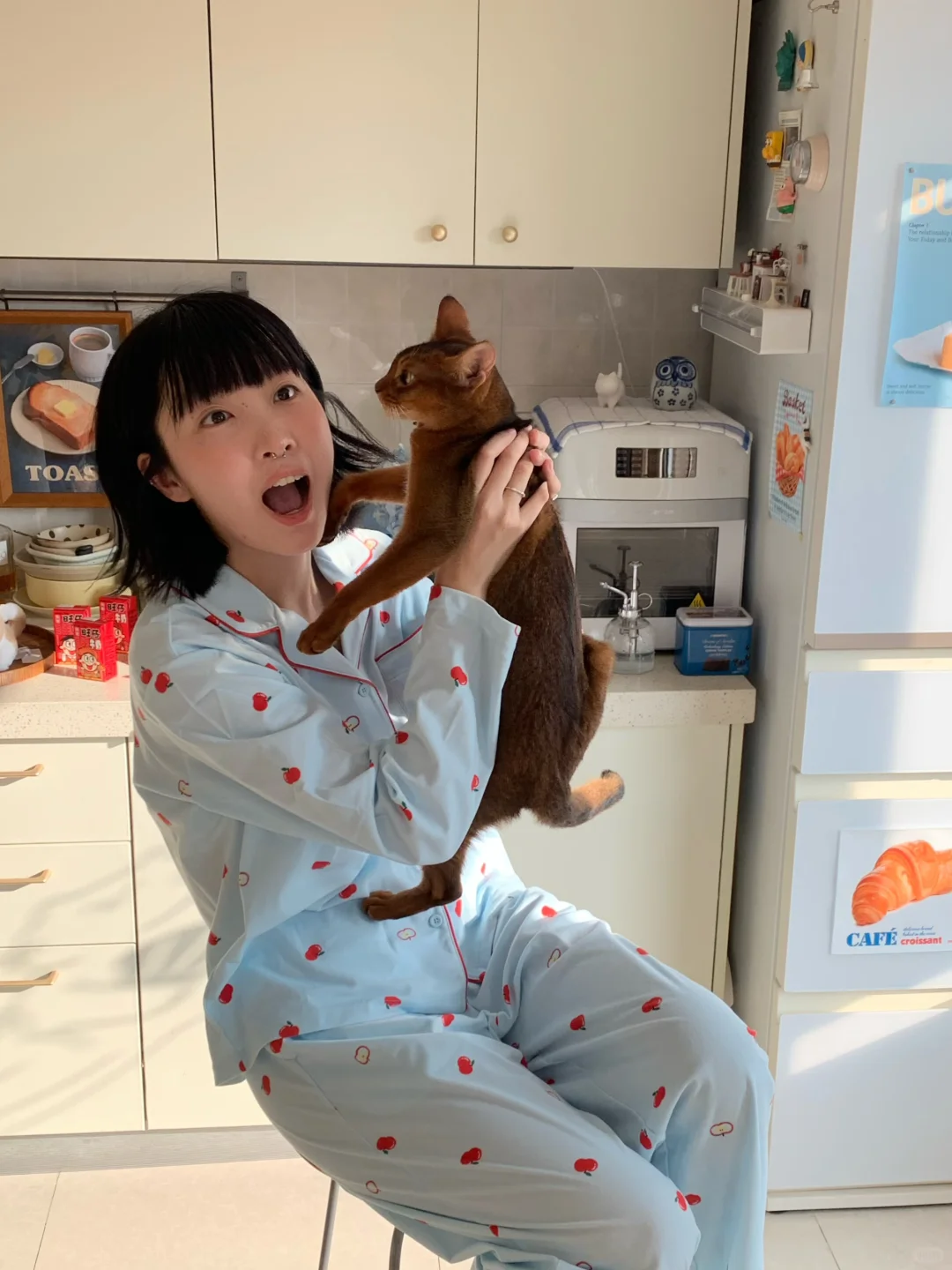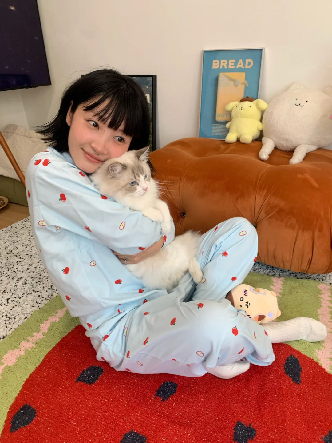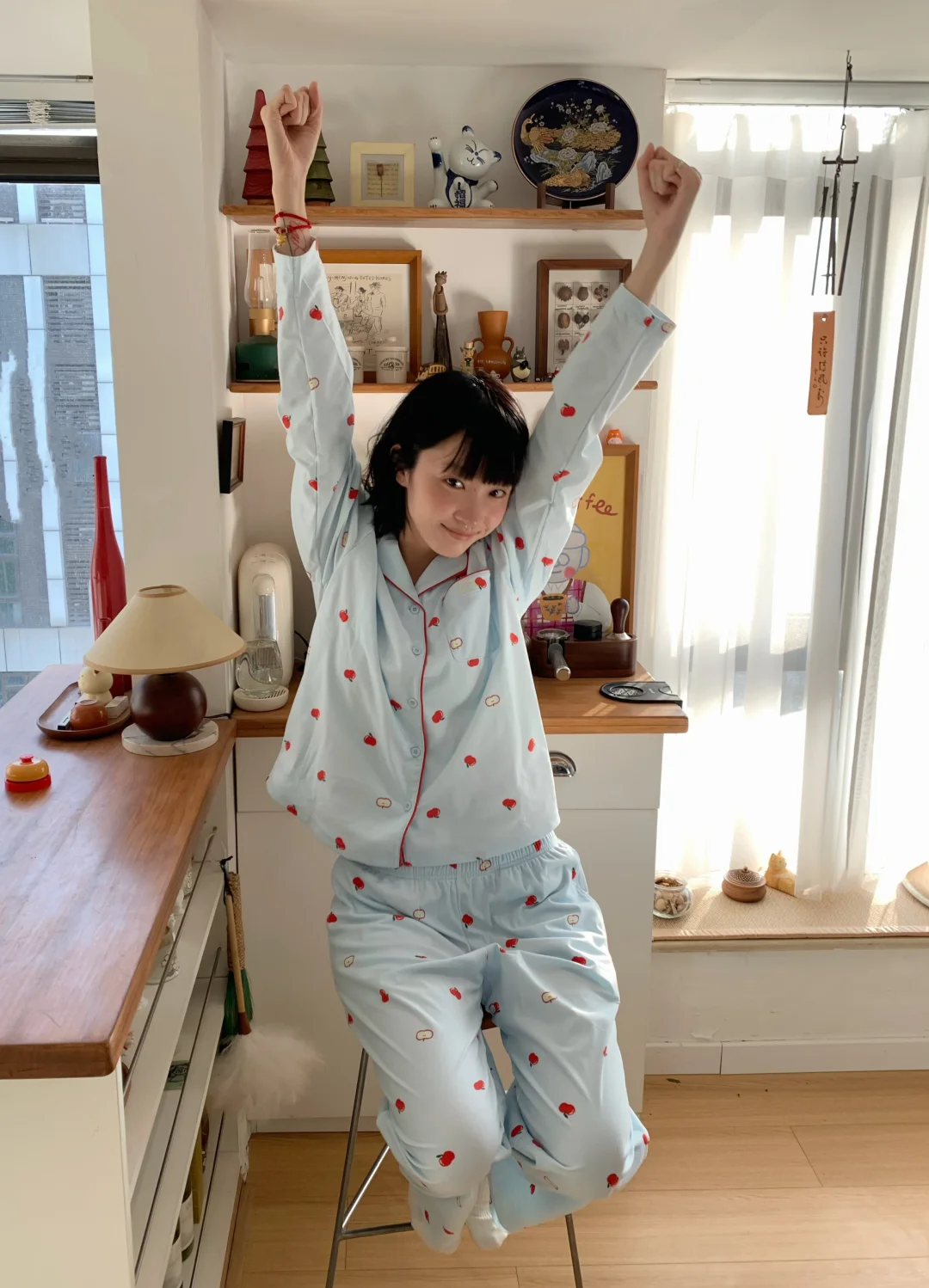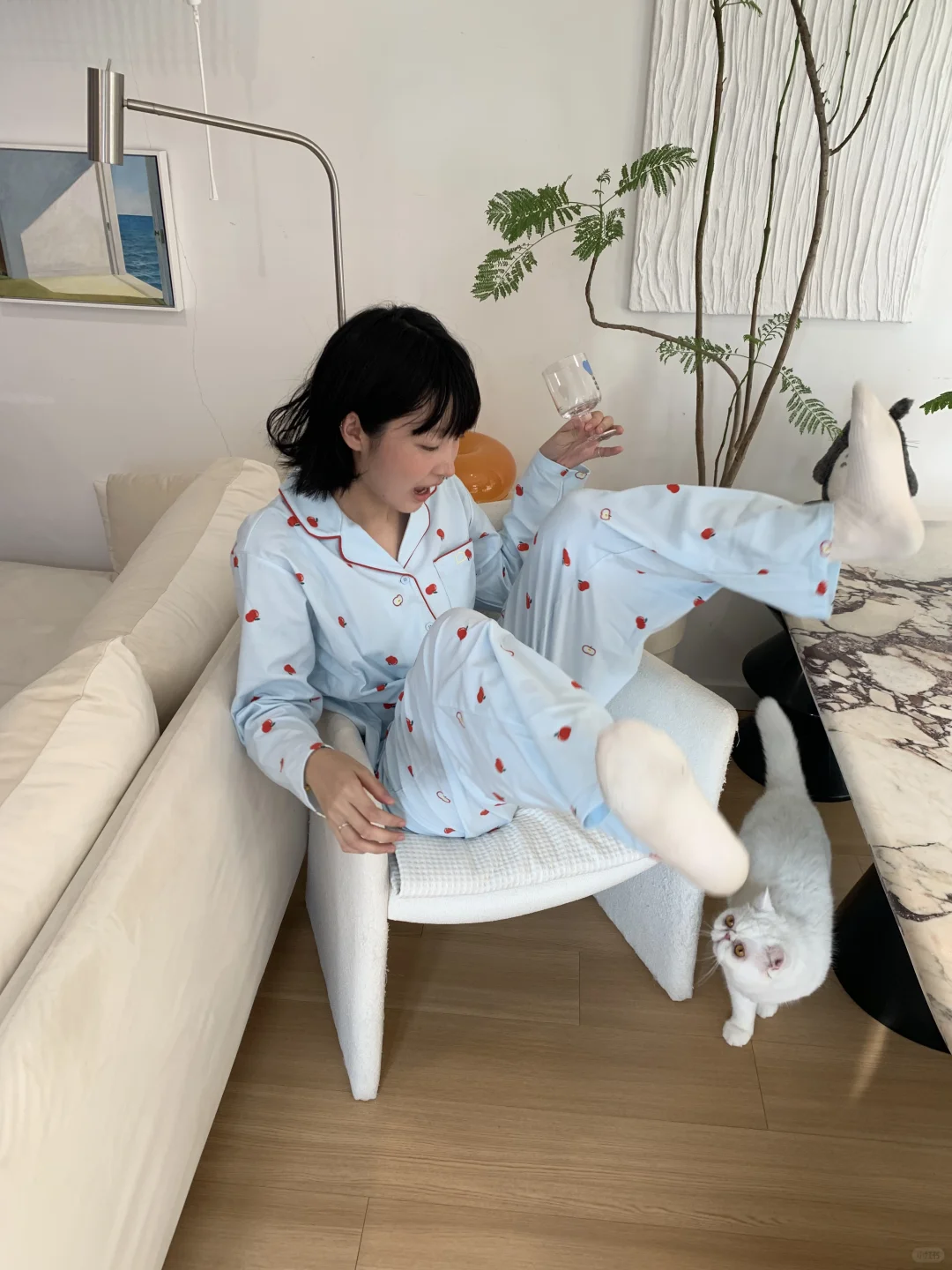 终于最近立秋啦 睡衣也是从短袖变成长袖长裤啦!是我最近新入的蕉内520H磨毛款家居服 绒绒家居服系列的新款 baby蓝搭配可可爱爱的樱桃花纹 在家就能出一套色彩大片 绒绒的面料像小猫咪的毛一样 柔柔软软的很舒服!感觉在空调房里一年四季都可以穿哒ᶘ ᵒᴥᵒᶅ