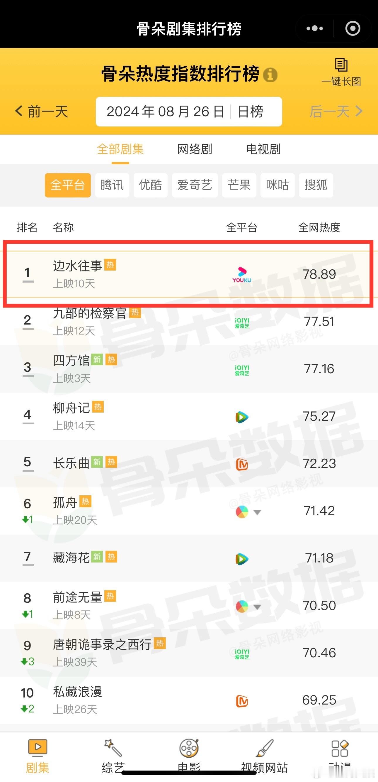 #边水往事登顶行业榜单##边水往事8榜TOP1#边水往事,悬疑佳作。登顶八大行业榜单,热度居高不下。剧情精彩,配角出色。豆瓣评分上涨,值得追看的好剧。