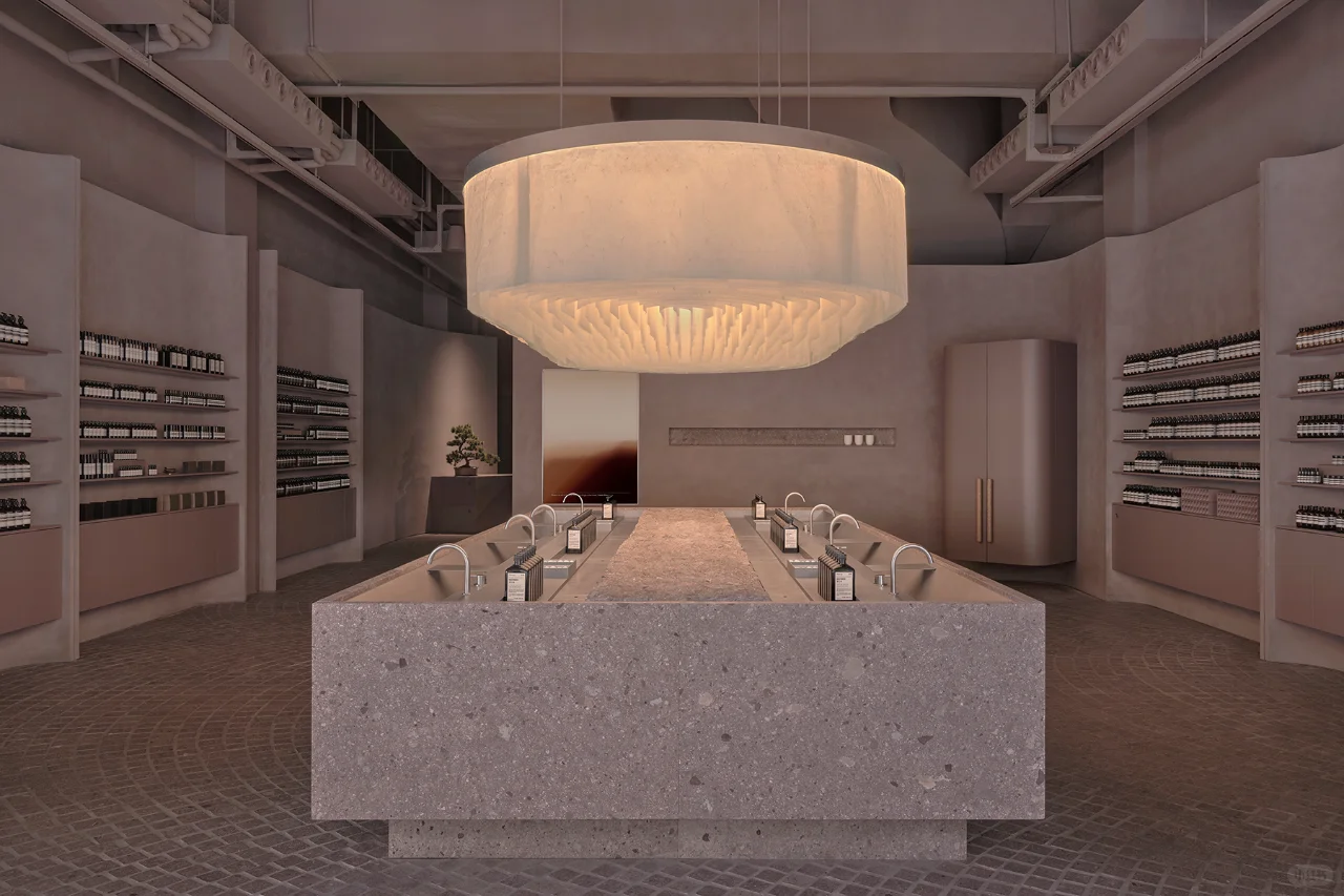 依水而建,水韵之城──杭州,自古以其众多的拱形石桥为特色。在Aesop伊索杭州万象城店的设计构思中,刷刷建筑工作室因地制宜融入了“桥”这一概念,作为连接与沟通的象征。