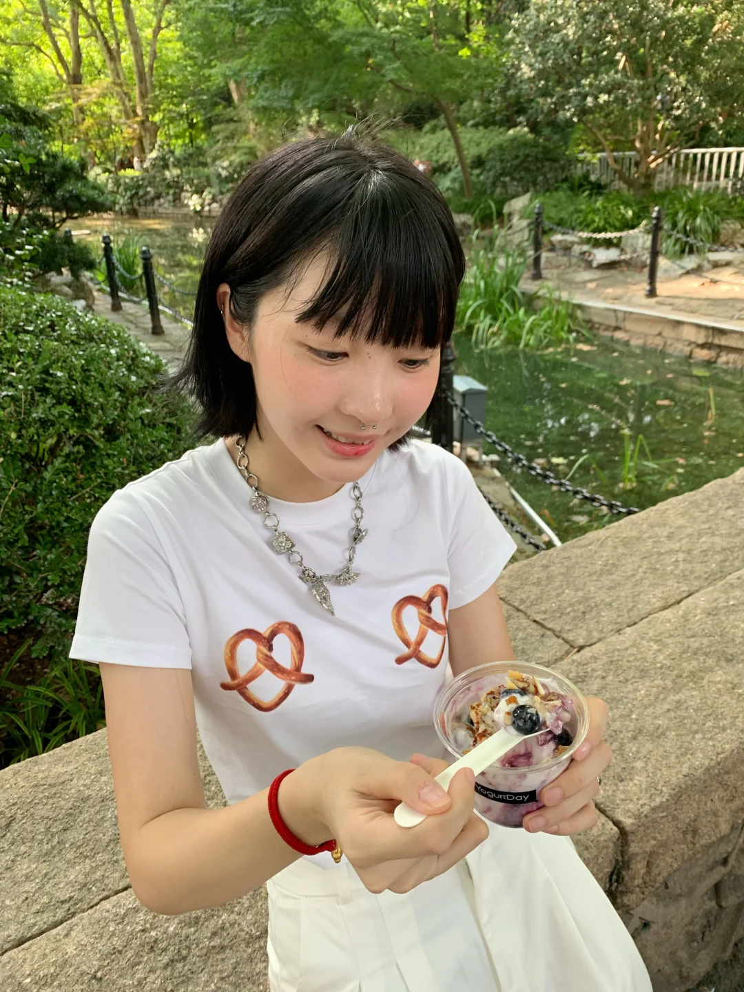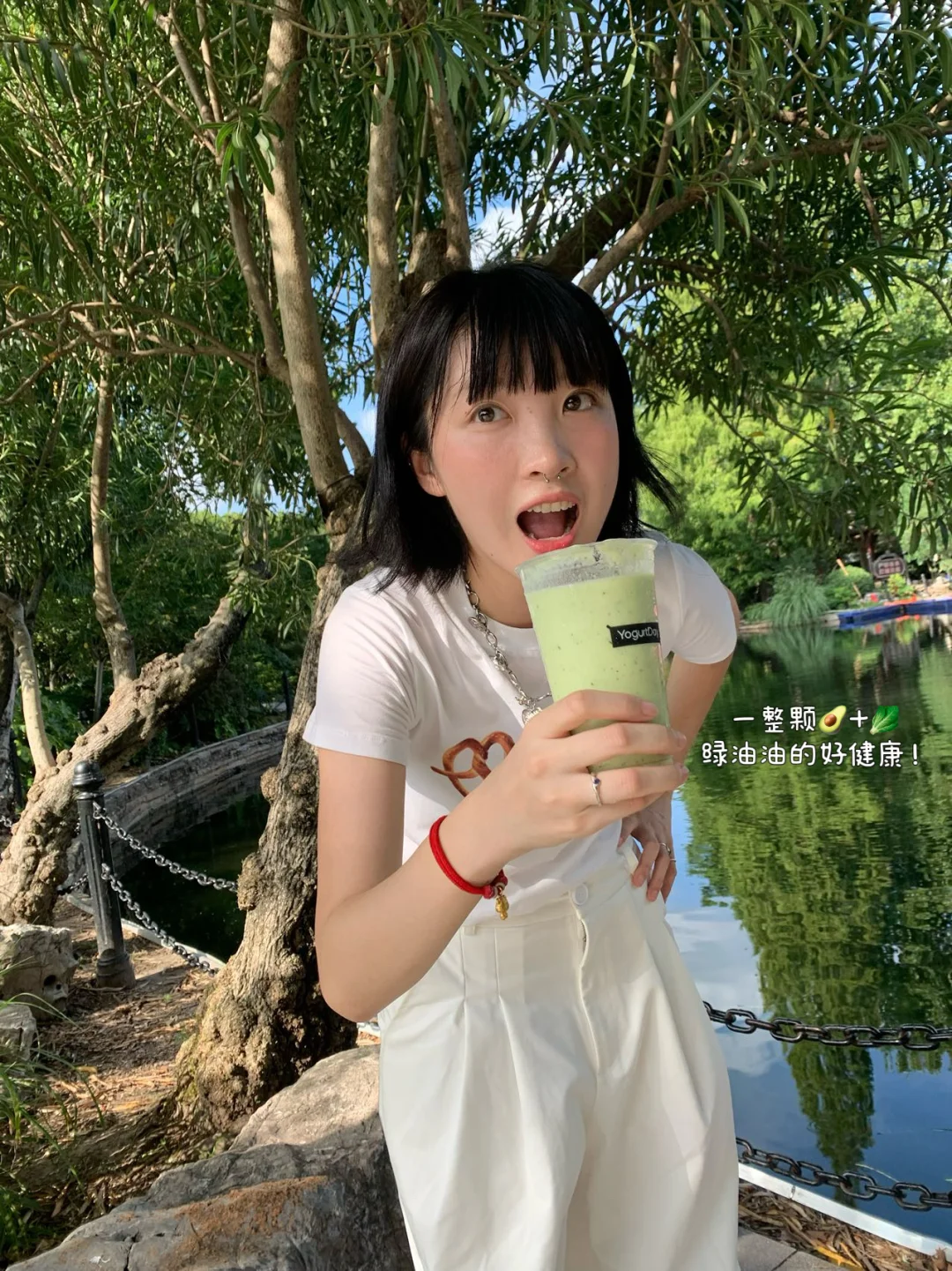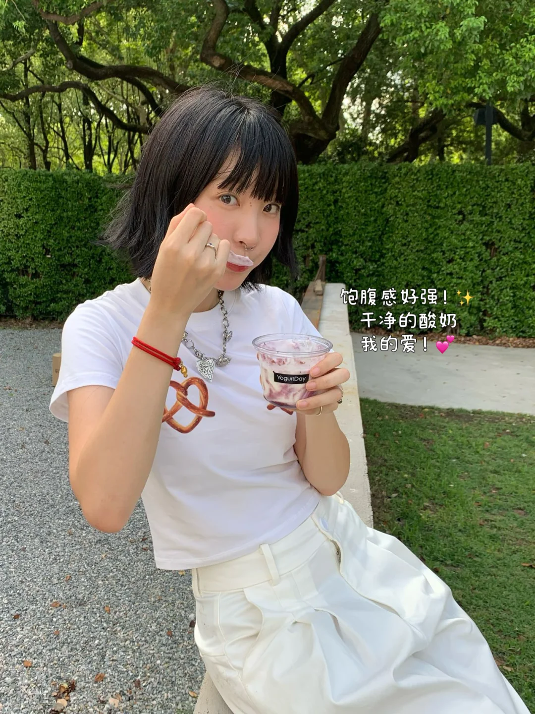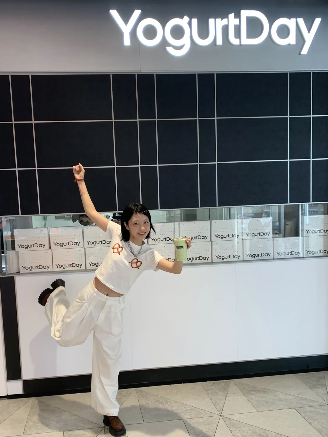 和朋友在一起总想喝点啥的👭但是最近正在健康饮食!一筹莫展的时候🥬转角就看到了最近很火的酸奶,居然开到虹口梦之龙了!店铺的颜值也很高忍不住拍了好多照片哈哈哈意外的还和我今天的ootd也很搭!