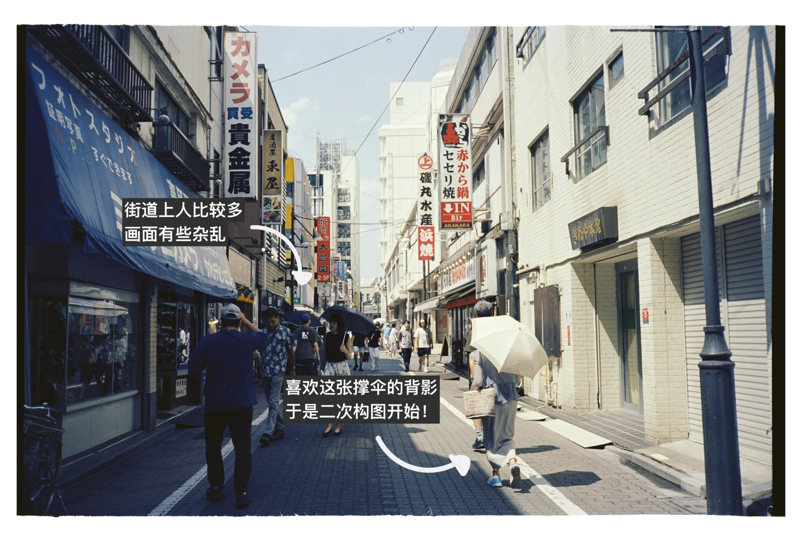 拍摄举例的这张照片时,由于马上就要去搭乘飞机,急于把相机里最后几张胶卷消耗掉,便跑到街上一通乱按。后期收到冲扫发现画面中有些部分还挺喜欢的,二次构图后就有了这张成片。