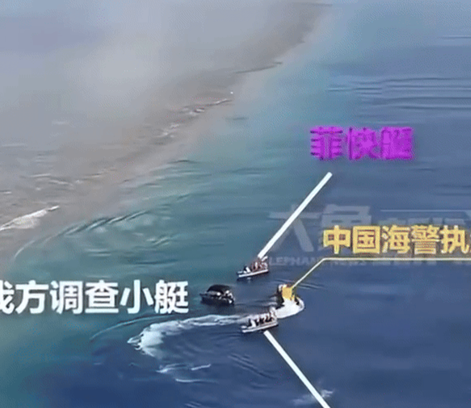 菲律宾海警船一度试图登上中方调查船,中国海警见状立即派出快艇,从调查船和菲海警船中间快速驶过,将调查船与对方隔开,并多次冲向菲律宾船只,将他们驱离。此外,美军也才派出P-8巡逻机,对中方正常的科考活动进行监视干扰。