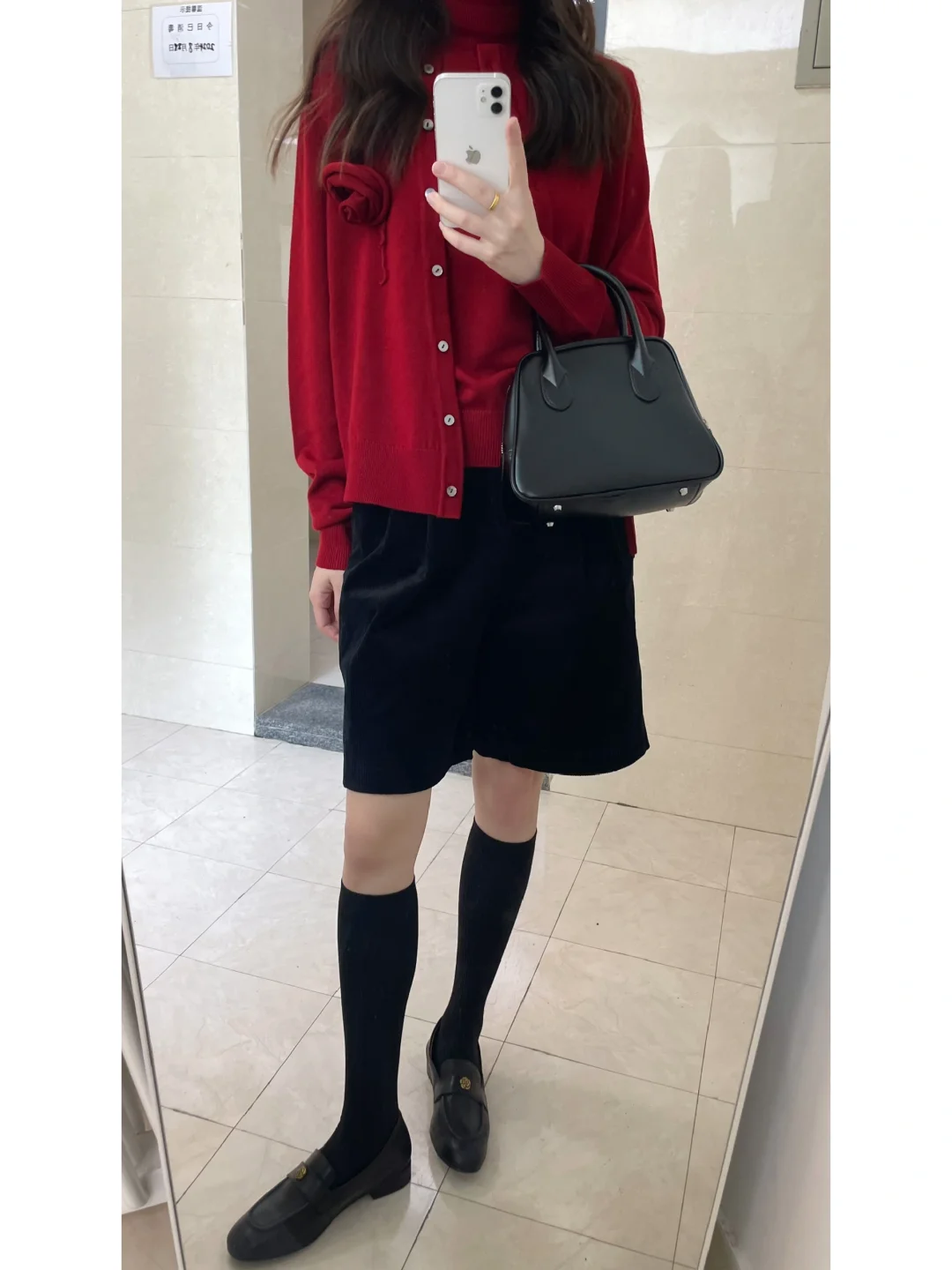 颜色很正!单穿或者搭背心都好看 黑色灯芯绒裤也是搭配好物~