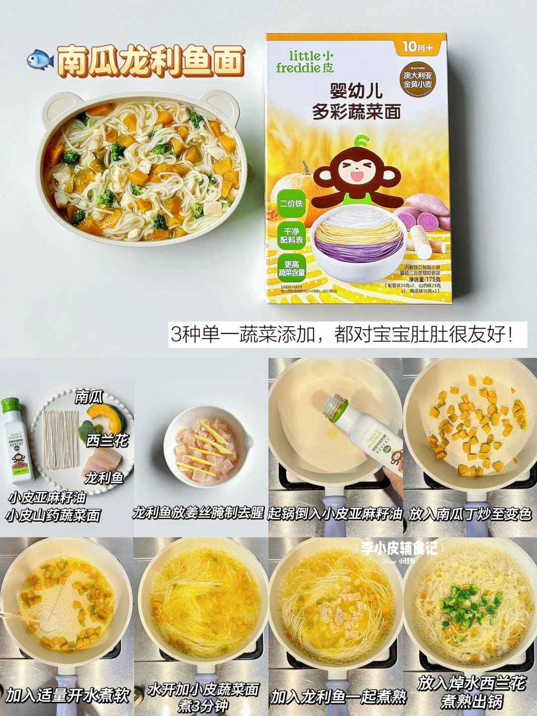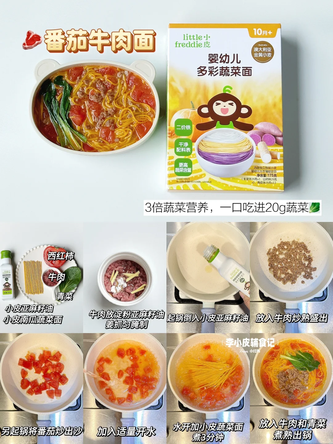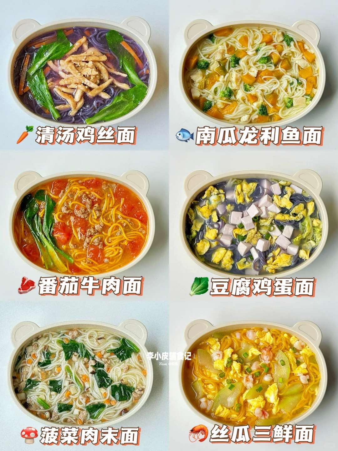 秋季是宝宝长个长🥩的猛涨期,辅食讲究营养全面,尤其要注意养好脾胃,脾胃棒的宝宝自然营养吸收得更好 👏🏻今天用我家娃敲爱吃的小皮面条给大家分享6款好吃又营养的面条辅食,简单快手,荤素搭配均衡,好吞咽好消化,每一款都好吃到光盘,饭渣娃也敲爱吃😋 家有挑食的饭渣宝宝赶紧收藏安排起来吧~[派对R] ✅番茄牛肉面 ✅丝瓜三鲜面 ✅南瓜龙利鱼面 ✅菠菜肉末面 ✅豆腐鸡蛋面 ✅清汤鸡丝面 ⚠️具体做法参考图片喔!食材大小需根据宝宝咀嚼能力处理,一岁以下宝宝不加调味料~ 面条是皮皮敲级喜欢吃的小皮蔬菜面~ ✅10%的足量蔬菜含量,每一口面条都裹满着蔬菜清甜,即使啥浇头都不加也能吃到面条的美味,一口进去敲满足!! ✅原料用的蔬菜还是对宝宝肚肚很友好的单一蔬菜,初添加面条的宝宝也不用担心会mm,紫薯+山药+南瓜3种口味搭配,每天都可以换着吃,宝宝更容易接受,从小吃惯蔬菜的味道,长大也就不挑食啦!还特别添加了和小皮米粉一样好吸收的二价铁🥰,搭配上高钙+维生d,营养更全面~而且符合婴幼儿辅食标准,没有盐添加剂等乱七八糟的添加,给宝宝吃的面条辅食,主打一个安心👍🏻 ✅水开后下面煮 3min就熟啦~软糯好吞咽,不坨不粘口感也很👍 对宝宝肚肚消化吸收敲👍 平时我还会习惯会搭配上小皮真香亚麻籽油,面条吃起来更香了,营养也更加丰富了~里面的0mega-3能转化为DHA,对宝宝的🧠发育很nice ~可冷拌面可热炒,做平时给皮皮做辅食都会习惯滴几滴,这样出来的辅食宝宝吃得嘎嘎香!没5分钟就光盘了~