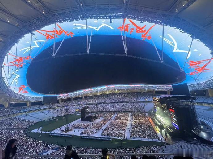 #许嵩演唱会天幕舞美#许嵩上海演唱会的舞美呈现美轮美奂,《河山大好》的清明上河图舞美大气磅礴。
