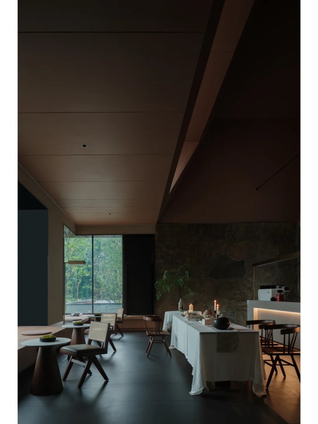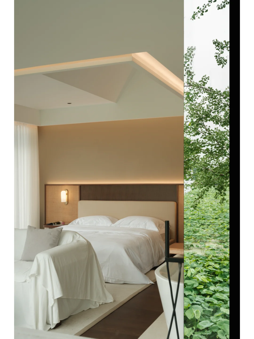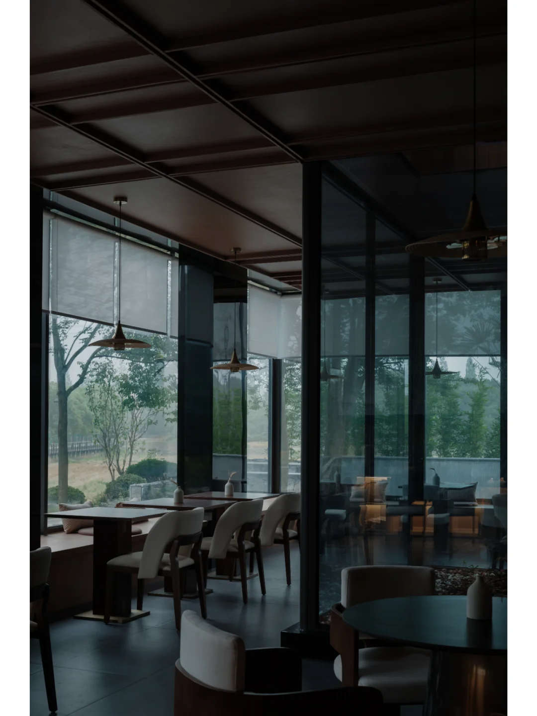 于古画间撷取一抹淡雅之色,将大堂空间构划为一方雅致休憩之所。大面积之玻璃窗,将外界旖旎风光与室内静谧景致交织相融,自然之息悠然入室,与人心绪共鸣。