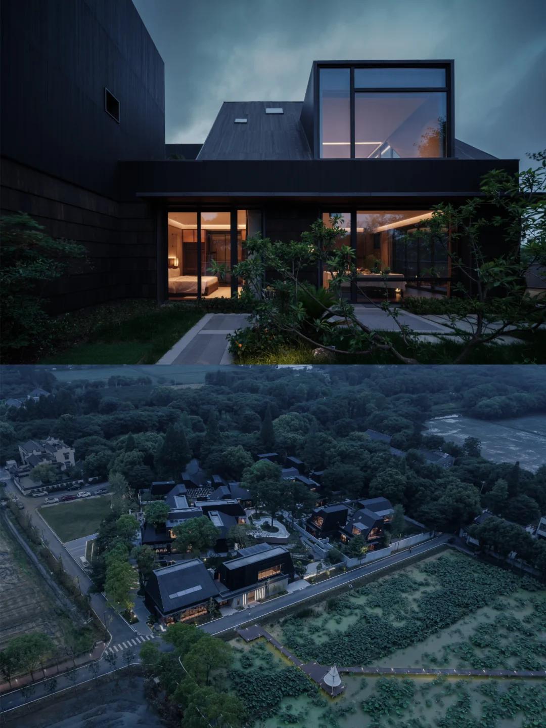 原舍濮院坐落于嘉兴桐乡的濮院镇,设计巧妙地借鉴了南宋画家刘松年的《西园雅集图》之二(局部)的艺术精髓,运用虚实相生、遮蔽有致、对称和谐、对景成趣以及窥探之妙的设计手法,将古代文人的雅集风情与现代空间美学完美融合。