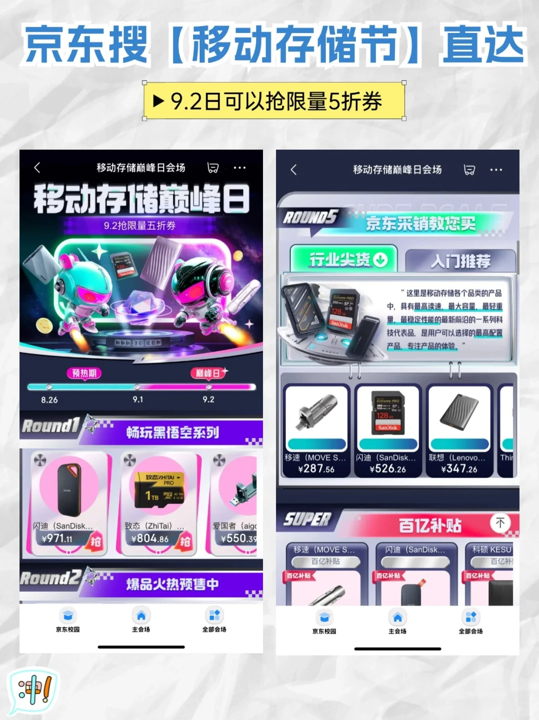 想入手的宝子直接在京东搜移动存储节,价格很香。9.2日可以抢限量5折U惠券,比日常价便宜很多!还有机会限量入61.8r全家桶~