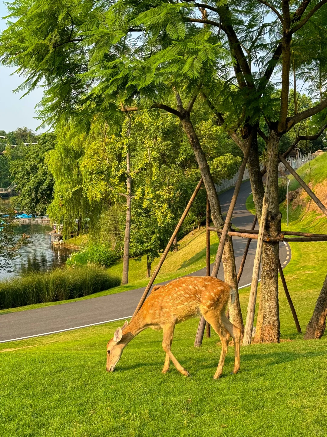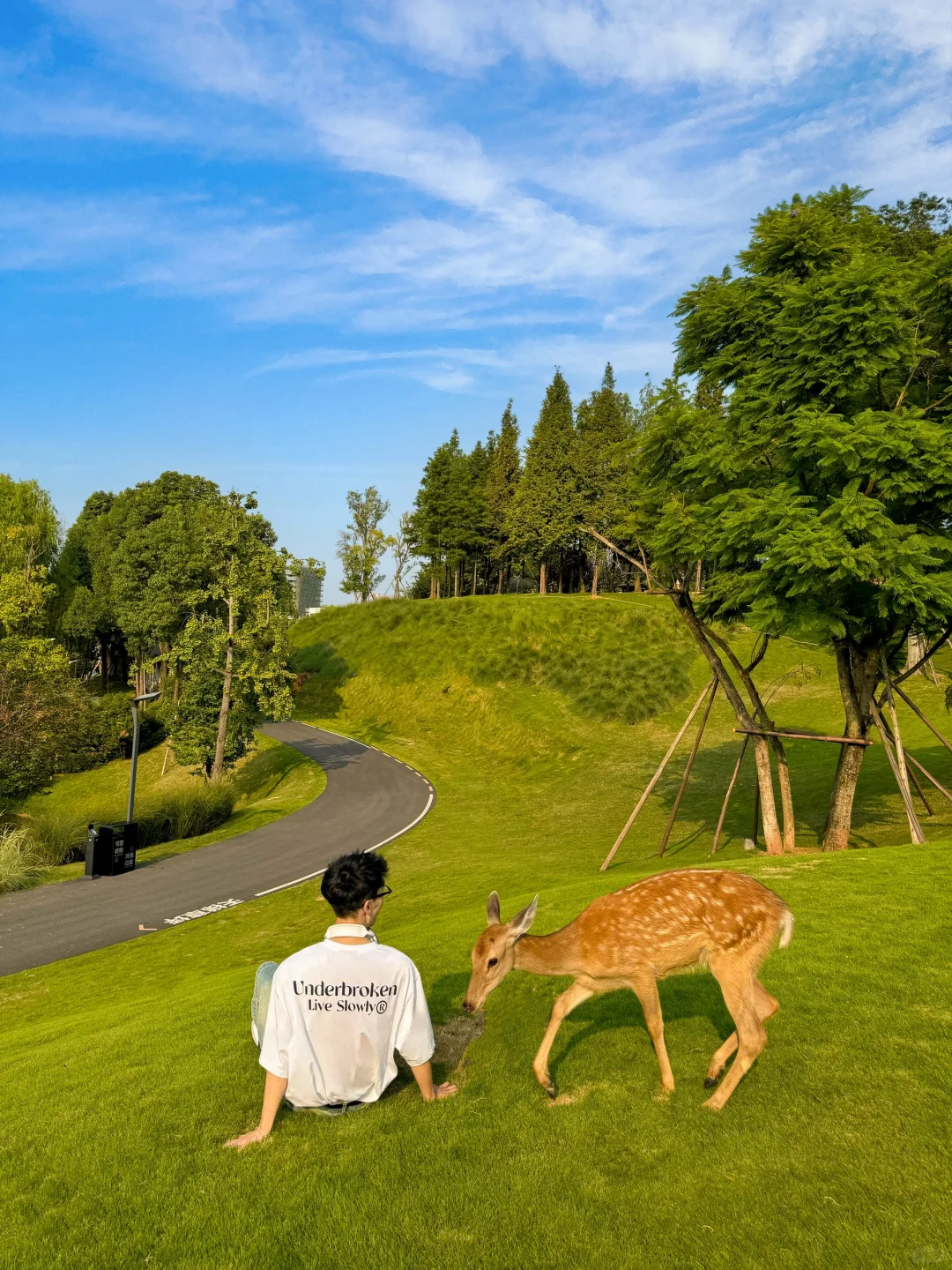 不是日本去不起!而是成都这里更有性价比 国庆没有出远门的计划,又想去一些小众地方 不妨来这里,地铁1号线直达!成都版的“小奈良” 有树林、湖泊、草坪….真的很出片~ 还能遇到可爱的小鹿、山羊…🦌 他们都很亲人,很有礼貌! . 逛完这里还可以去旁边新开的cpi逛一逛 又是被大自然治愈的一天呀! 📍:麓客岛 🚇:地铁1号线红石公园站下,步行前往