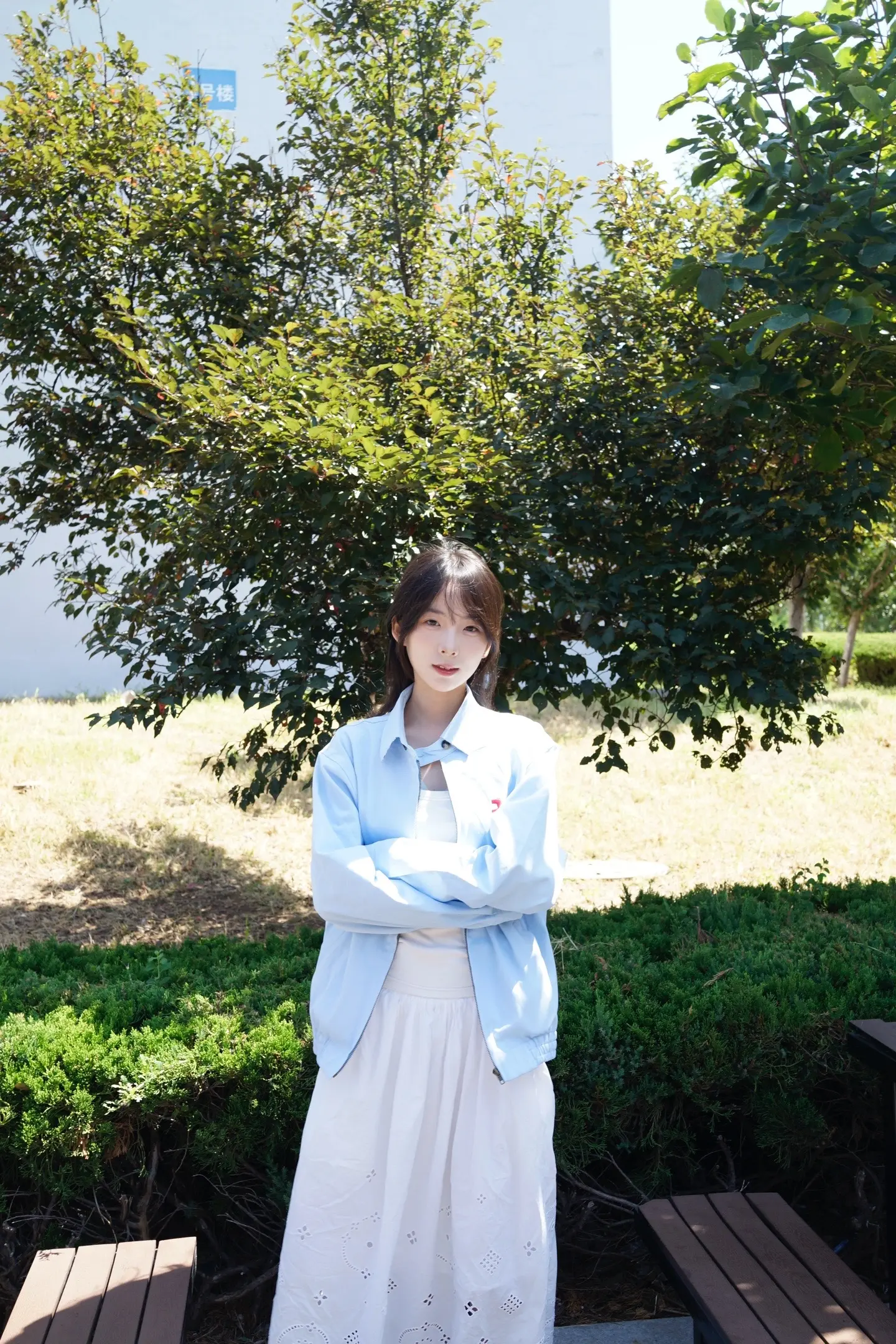 白衫是薄瓷的容器盛着心跳与呼吸绿裤是柔韧的藤缠裹着骨骼的倔强~柳丝拂
