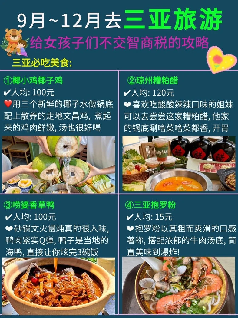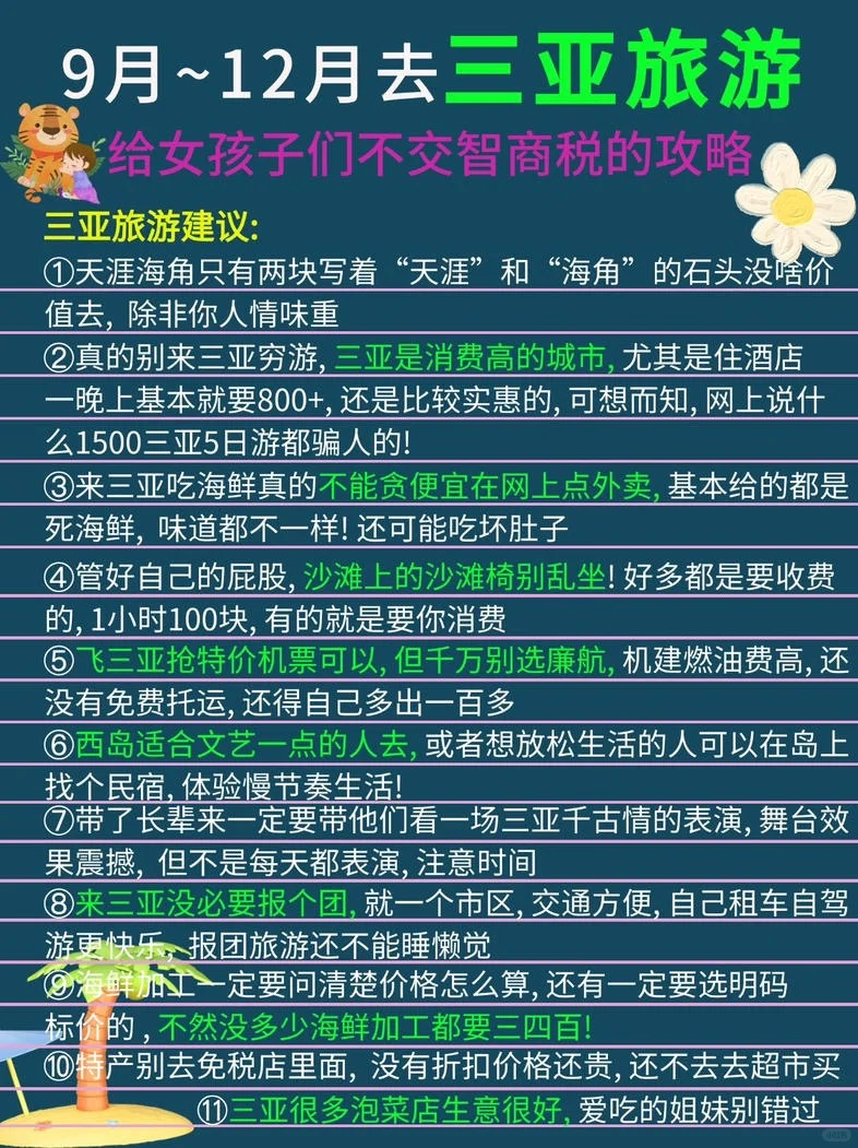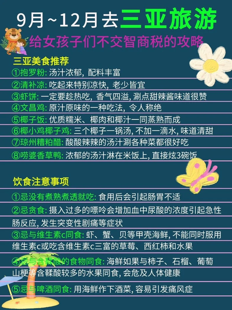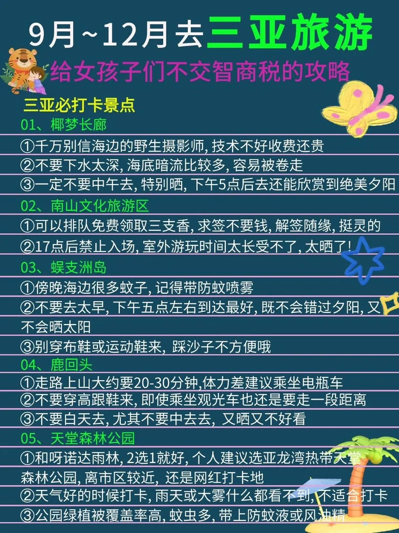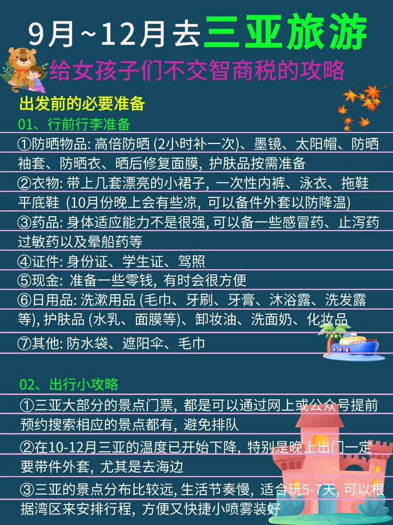 三亚的9月中旬~12月下旬,温度都会慢慢下降,宝子们!记🉐带件薄外套,晚上用的着,这几个🈷️差不多也是游客海滨活动🉐绝佳选择,所以宝子们,可以提前准备攻略啦‼️