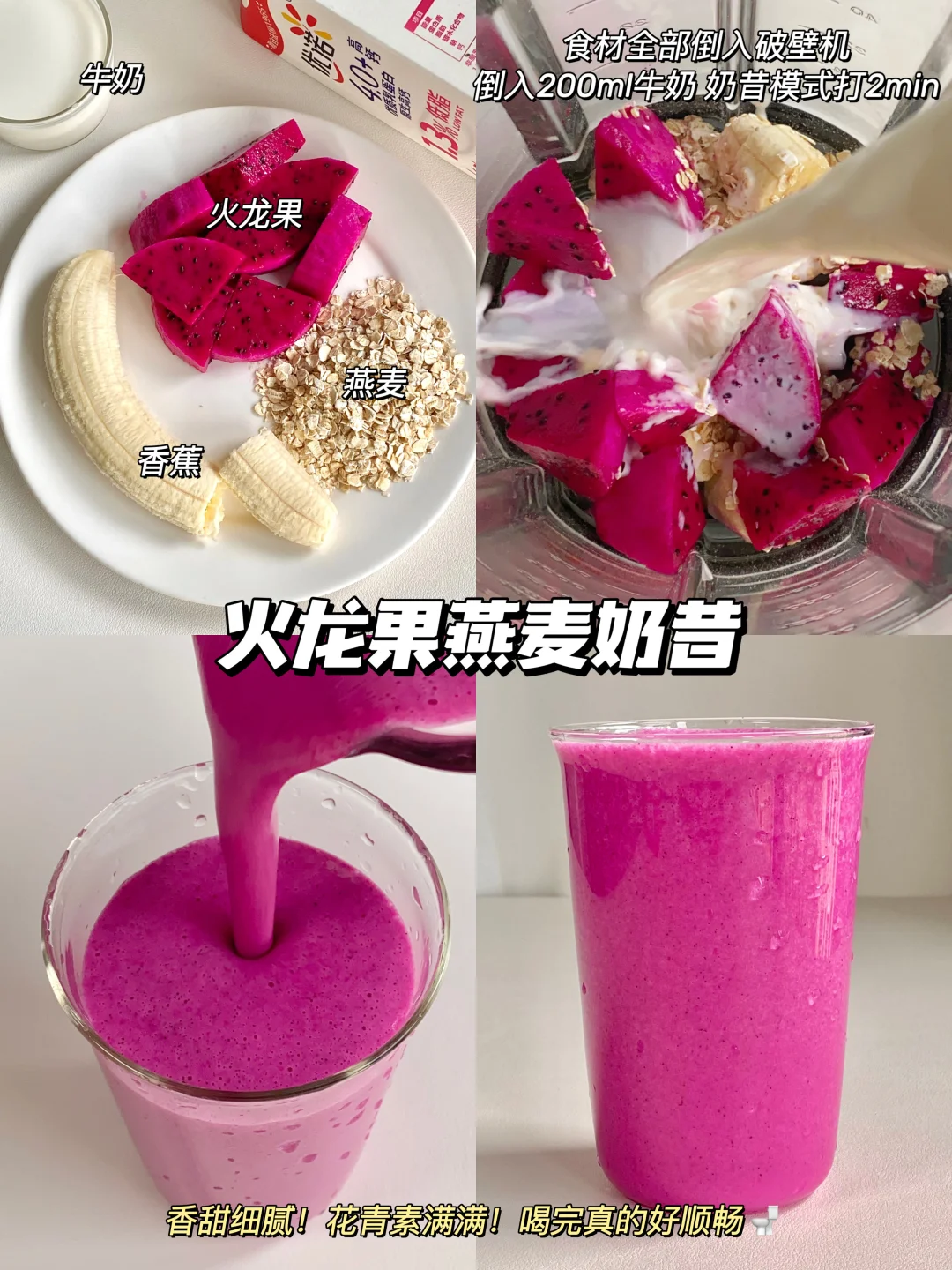🍌周三喝:香蕉➕火龙果➕燕麦➕低脂鲜奶