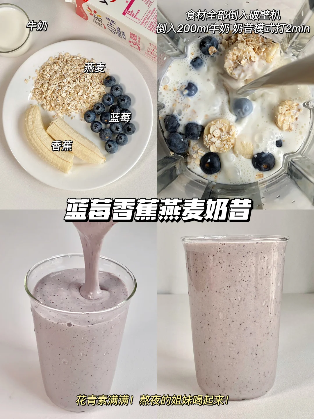 🫐周六喝:蓝莓➕香蕉➕燕麦➕低脂鲜奶