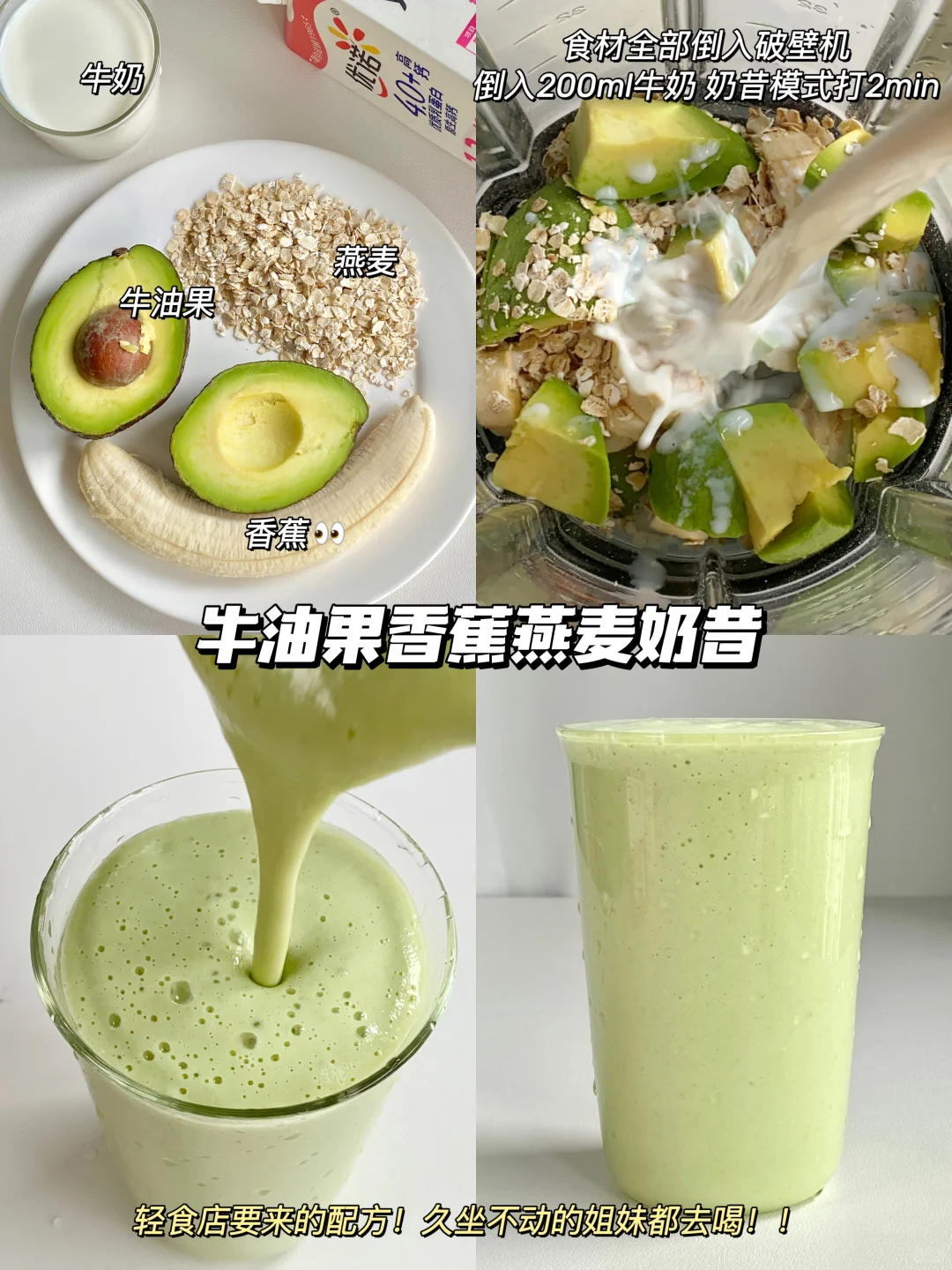 🥑周二喝:牛油果➕香蕉➕燕麦➕低脂鲜奶