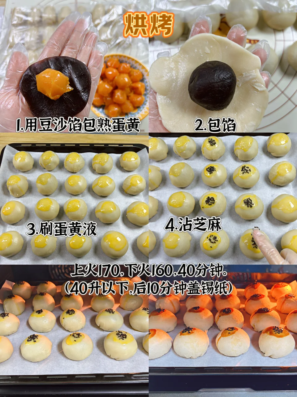 自己做蛋黄酥,用料实在,个头大,一个吃过瘾。咸蛋黄我用的熟咸鸭蛋黄,省去处理的时间,直接包了烤。
