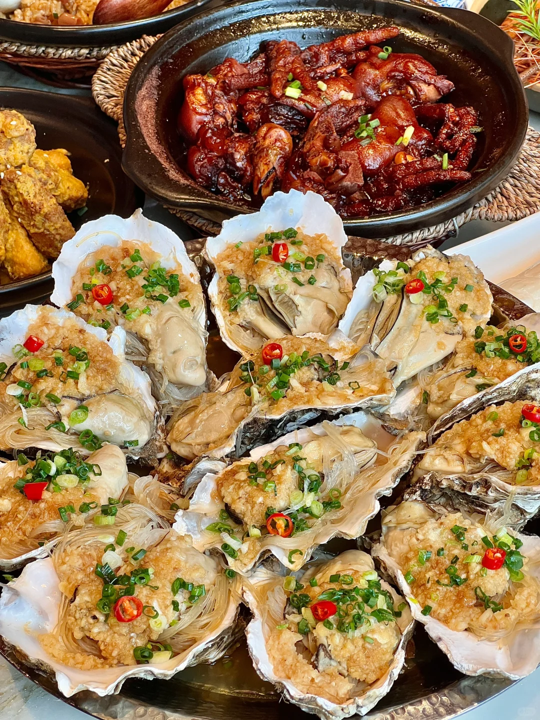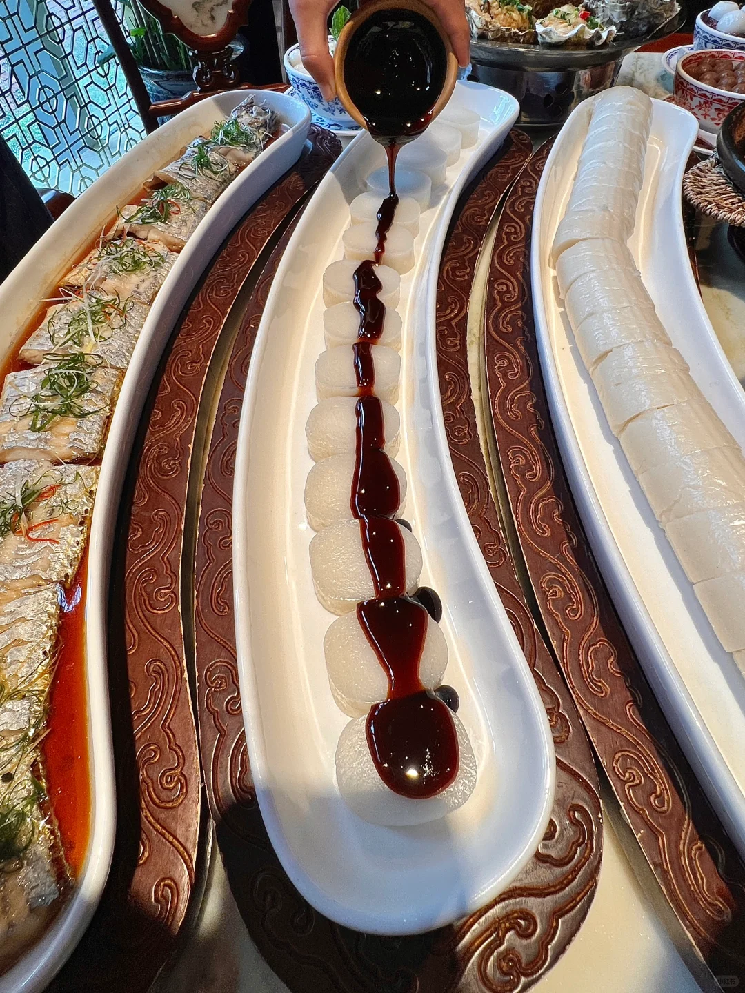 长盘整条带鱼、姜葱肥蛏、猪蹄凤爪煲…