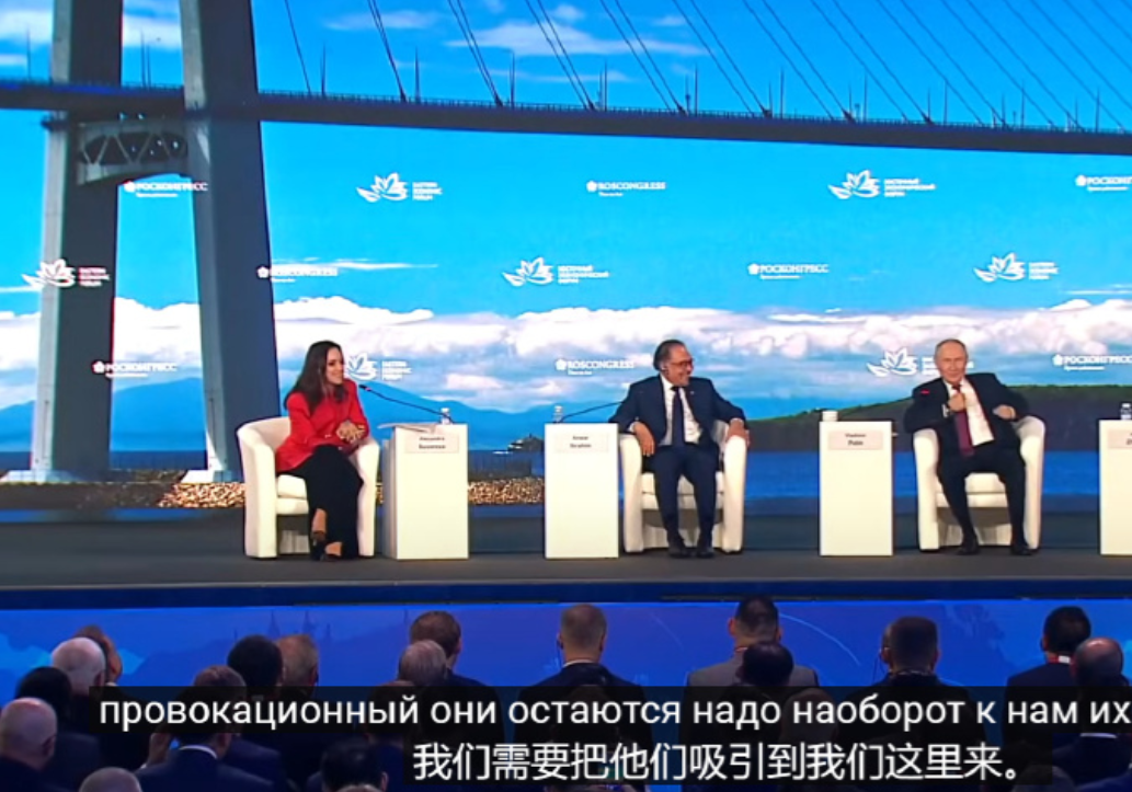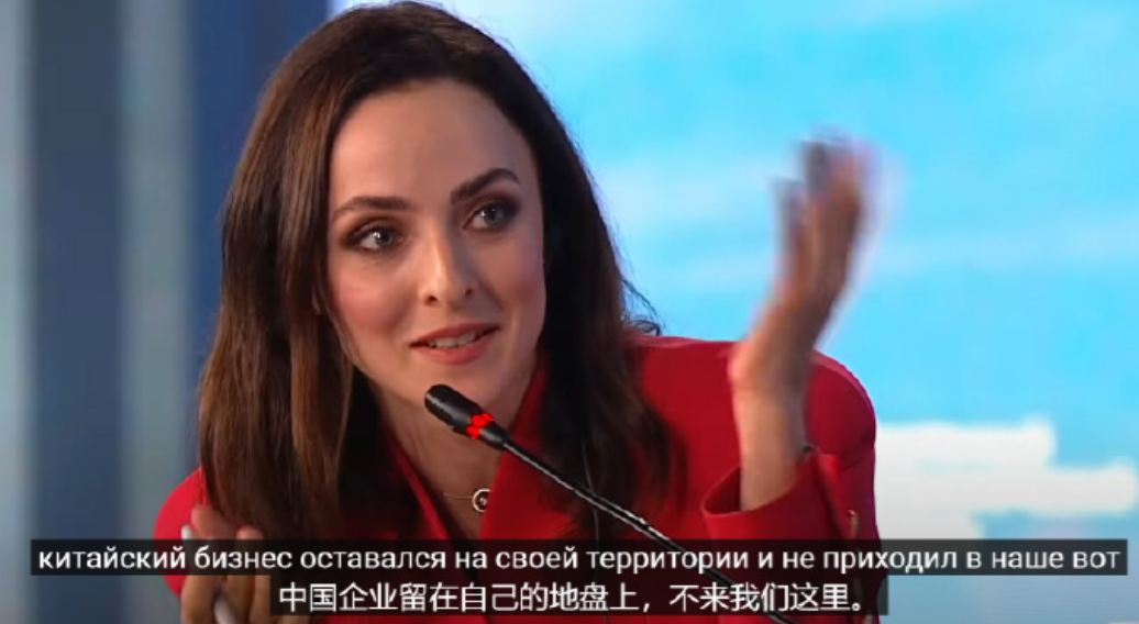 俄罗斯的这个美女主持人亚历山德拉-苏沃洛娃,不知道是不是智商不在线,竟然提问:如何让中方企业留在国内,而不是来俄罗斯?普京当时就急了:你为什么要问这些挑衅性的问题?然后,苏沃洛娃就露出一脸尴尬的笑容。