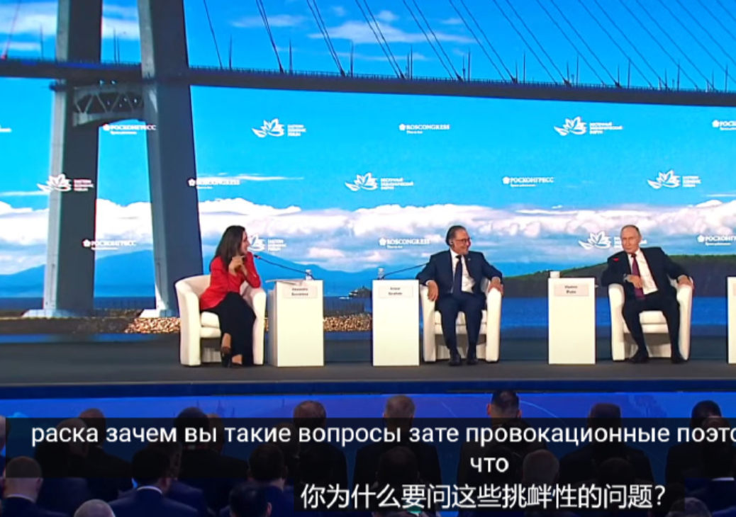 俄罗斯女主持人挑衅中方,遭普京当场驳斥后,脸上笑容很尴尬!