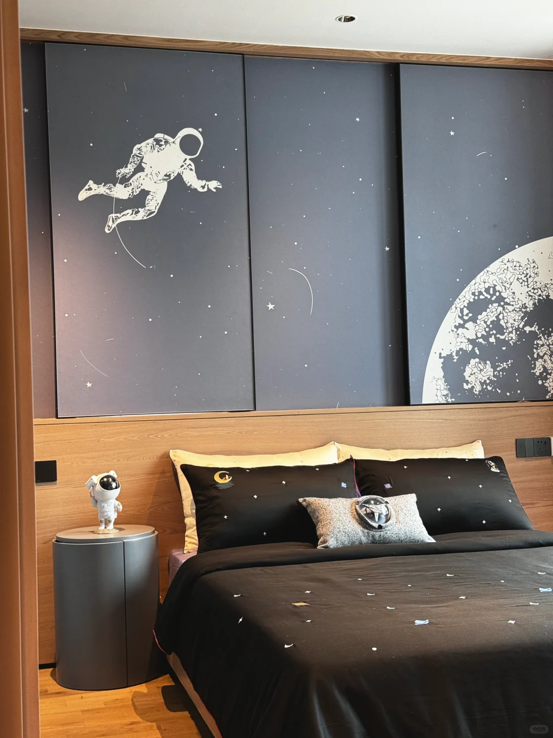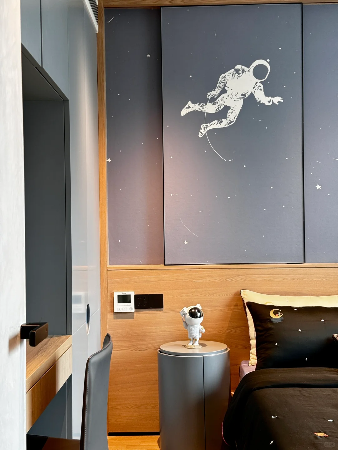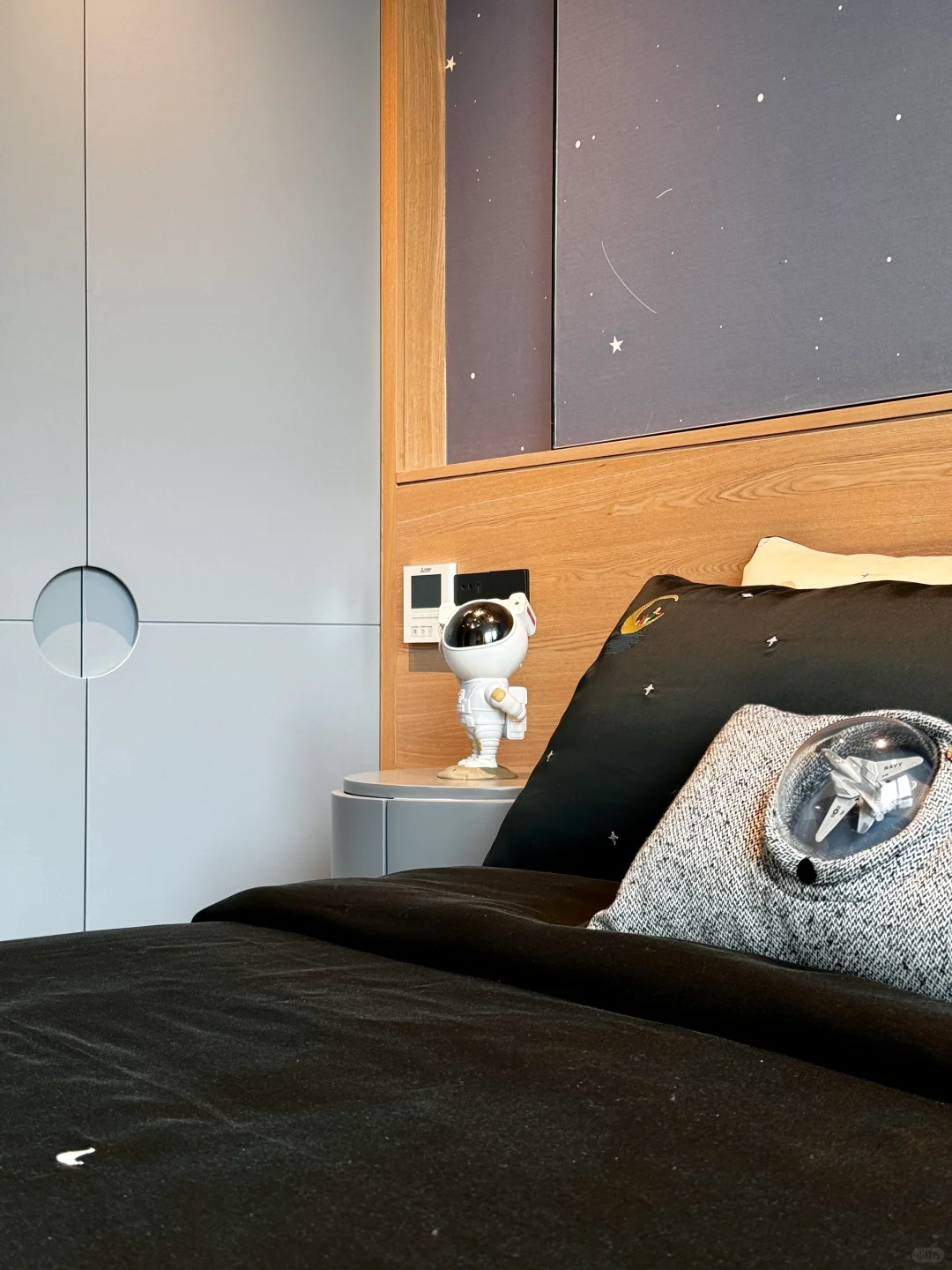 ADDRESS.温州都会道一号 在爱里长大的小孩当然幸福了! 卧室门外是奢华舒适的“海上游艇”,门内是追梦逐星的航空世界[赞R] 洞洞板收纳书包与玩具;书桌前不只有作业也有梦想。沉浸于航空的世界也别忘了好好休息! 祝每个小孩都能坚持自己,成为自己人生中的“领航员”[派对R]