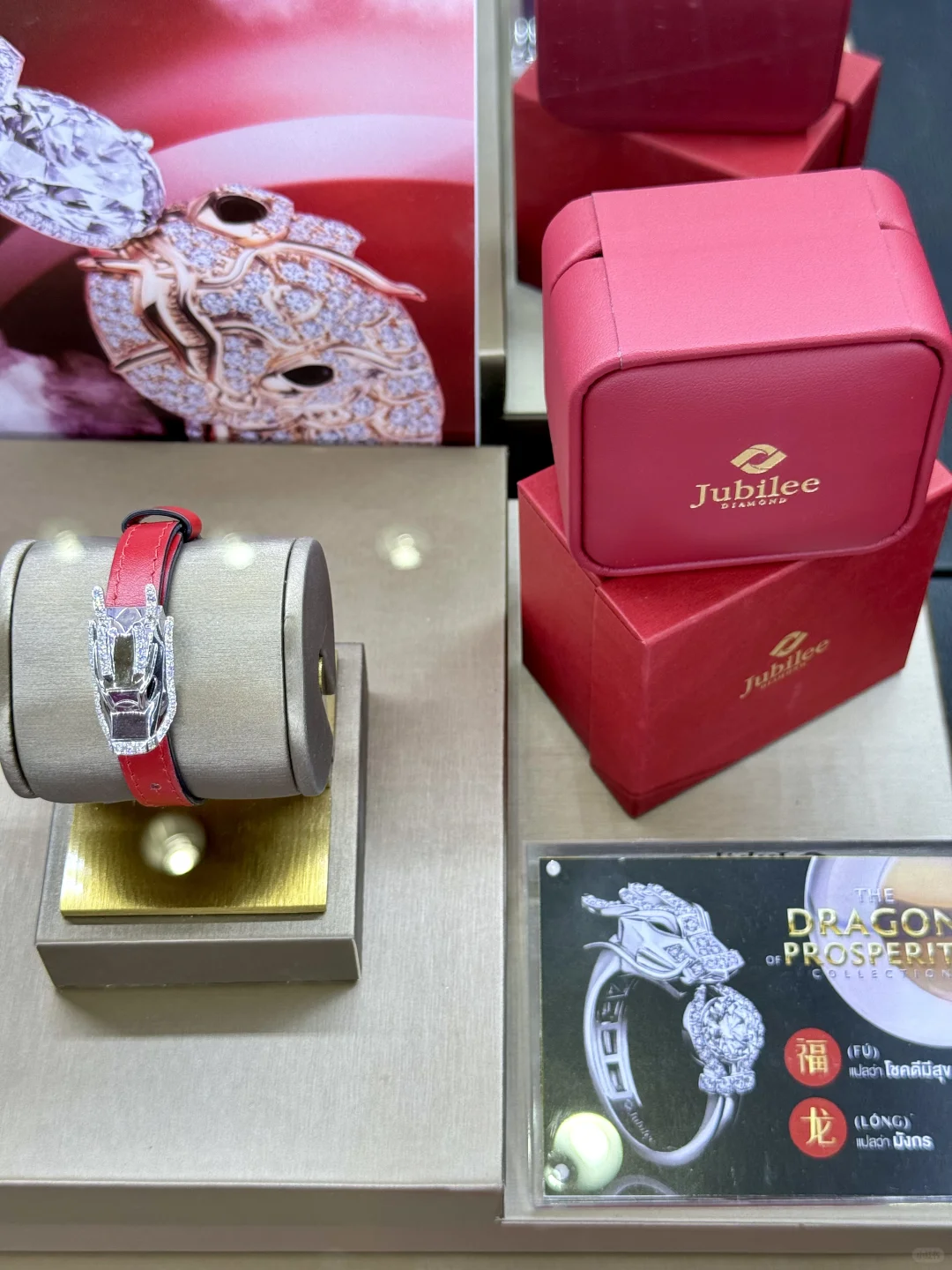 宝子们离开曼谷前 建议买伴手礼来逛Central World🇹🇭一站式购齐不用费劲的专门找‼️Jubilee这个天然钻石品牌💎它是泰国成立了95年的资格老品牌 他家主推的“福龙”系列真的好好看😻龙头红绳镶钻奢华又洋气 超有泰国特色 尺寸可随意调节👍龙头寓意超好 无论是伴手礼送人还是自用都很适合🥰还有很多别的项链首饰都很好看🤩性价比超高的👍位置就在Central World一楼姐妹们都给我冲呀‼️