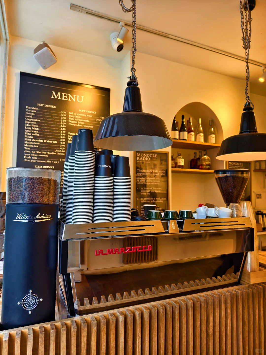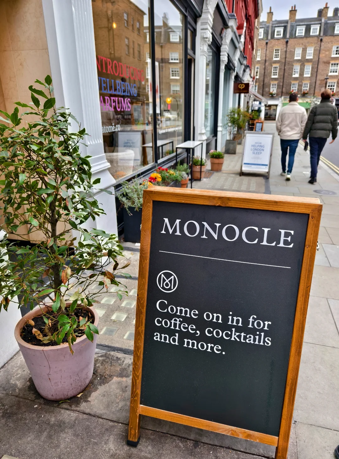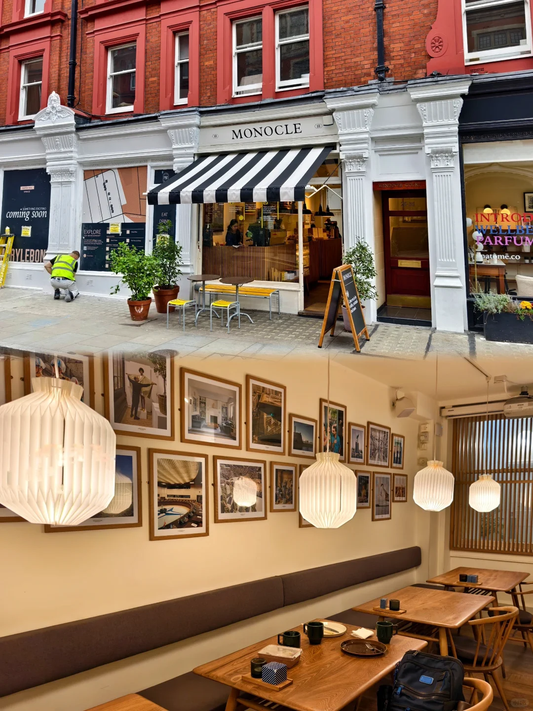 🔥Monocle是一家全球知名的杂志品牌,关注商业、文化、设计、旅行和生活方式等方面,是文艺青年们喜欢的一本杂志,不少咖啡馆和办公室为了彰显自己的品味,都会放上几本Monocle杂志来做装饰。 🔥Monocle 只在全球少数城市开设了实体店,全球仅在伦敦、东京、香港各一家,今天来到了伦敦这家开在文艺气息浓厚的Marylebone片区的街头小店,店面是法式装修,内设却有着日式风格,店铺不大,地下一层也有些位置,除了咖啡、面包等,它家还有不少日式餐品可以选择。 🔥上海还在35度的高温,这里的气温已经是真正的秋天了,居然已经有人穿羽绒服了。