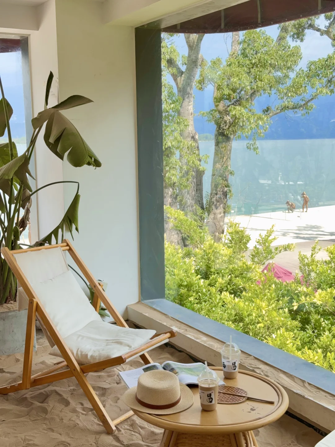 靠在窗景边发呆看海、晒太阳