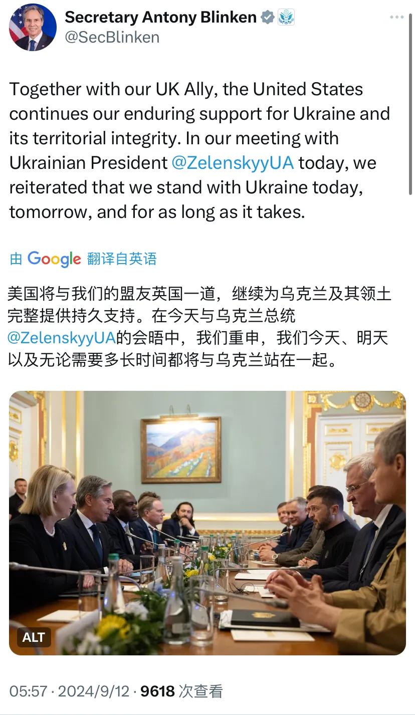 美国国务卿布林肯今天写道:“美国将与我们的盟友英国一道,继续为乌克兰及其领土完整提供持久支持。在今天与乌克兰总统泽连斯基的会晤中,我们重申,我们今天、明天以及无论需要多长时间都将与乌克兰站在一起。” [机智]评几句:布林肯说“无论需要多长时间都将与乌克兰站在一起”,至少从目前来看,这场消耗战还将持续下去。这一次,布林肯是和英国外交大臣拉米一起与泽连斯基举行了会晤,并与新任乌克兰外长见了面。布林肯还宣布将向乌克兰提供超过7亿美元的新援助。中国贷款给非洲国家进行生产建设改善人民生活遭到英美媒体的不断抹黑,而美国不断向以乌克兰和以色列提供武器弹药却被某些英美媒体视为正义之举。[白眼]