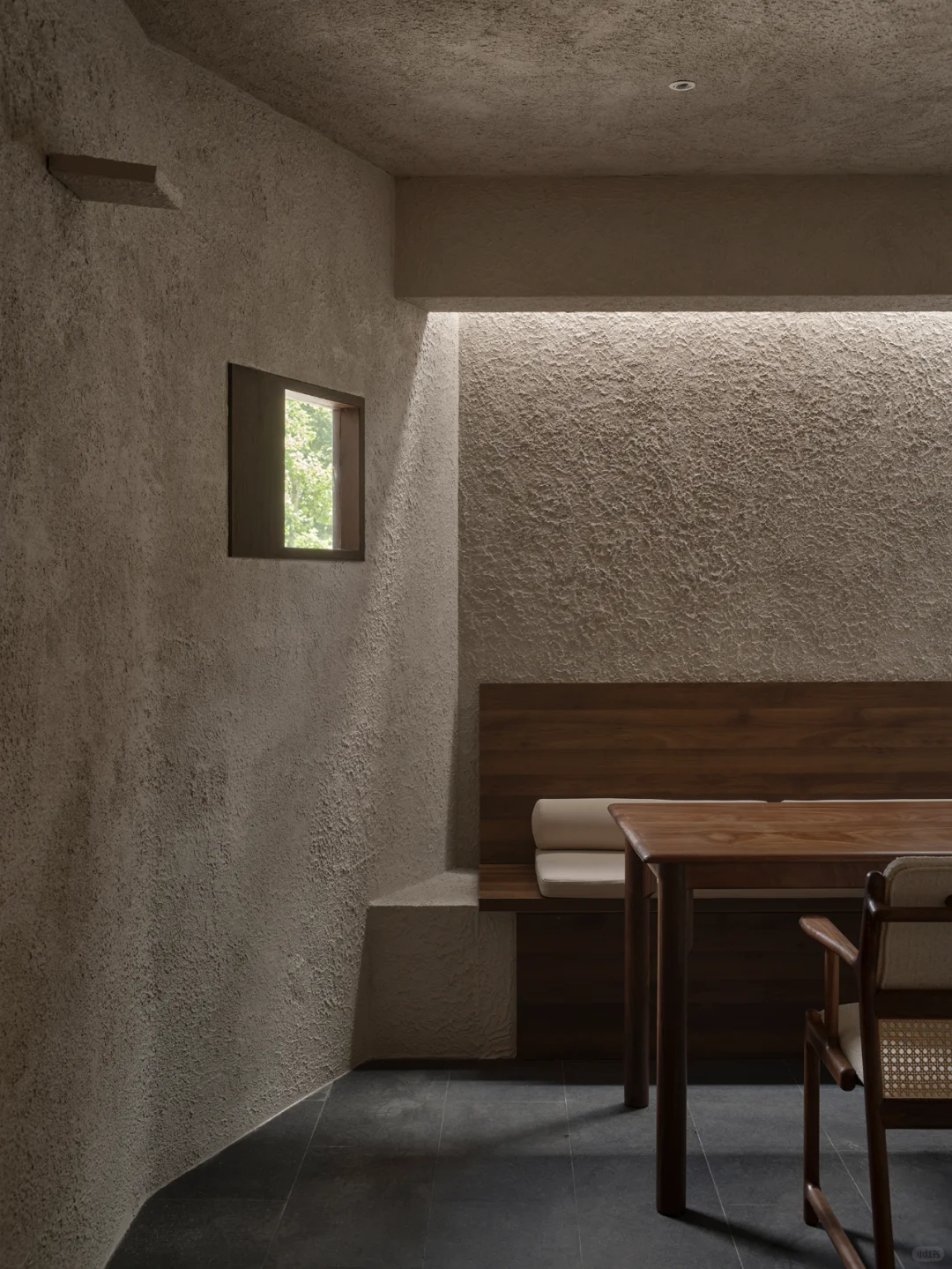 各自独立的6个房间。无论是凹凸有变的墙体还是斜切弯折的顶面,都有着一种区别于人造物的不规整质感,其自然有机的形态如同散落在砾石沙滩上的几块巨岩。