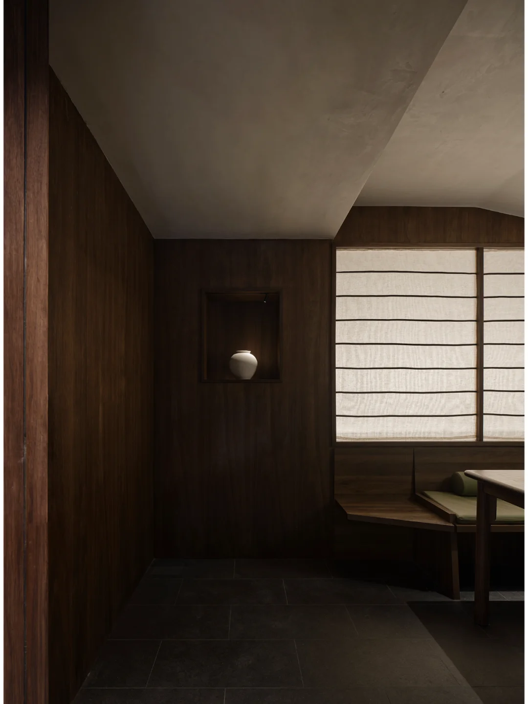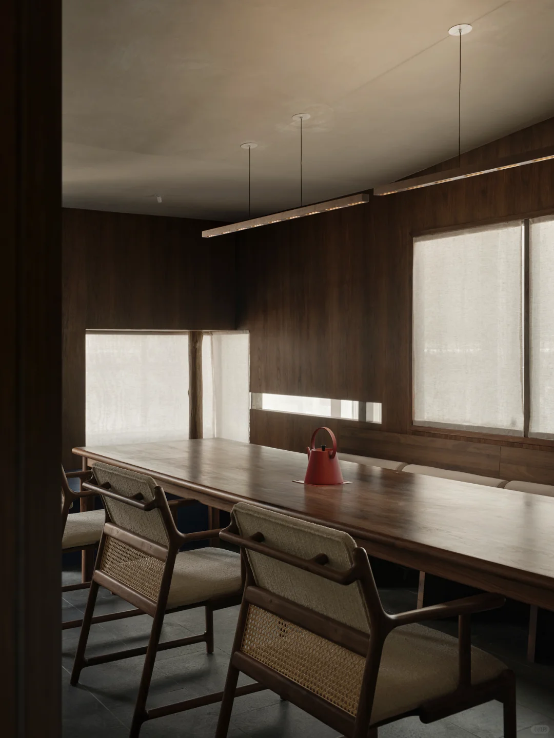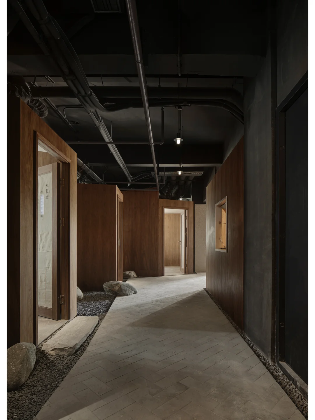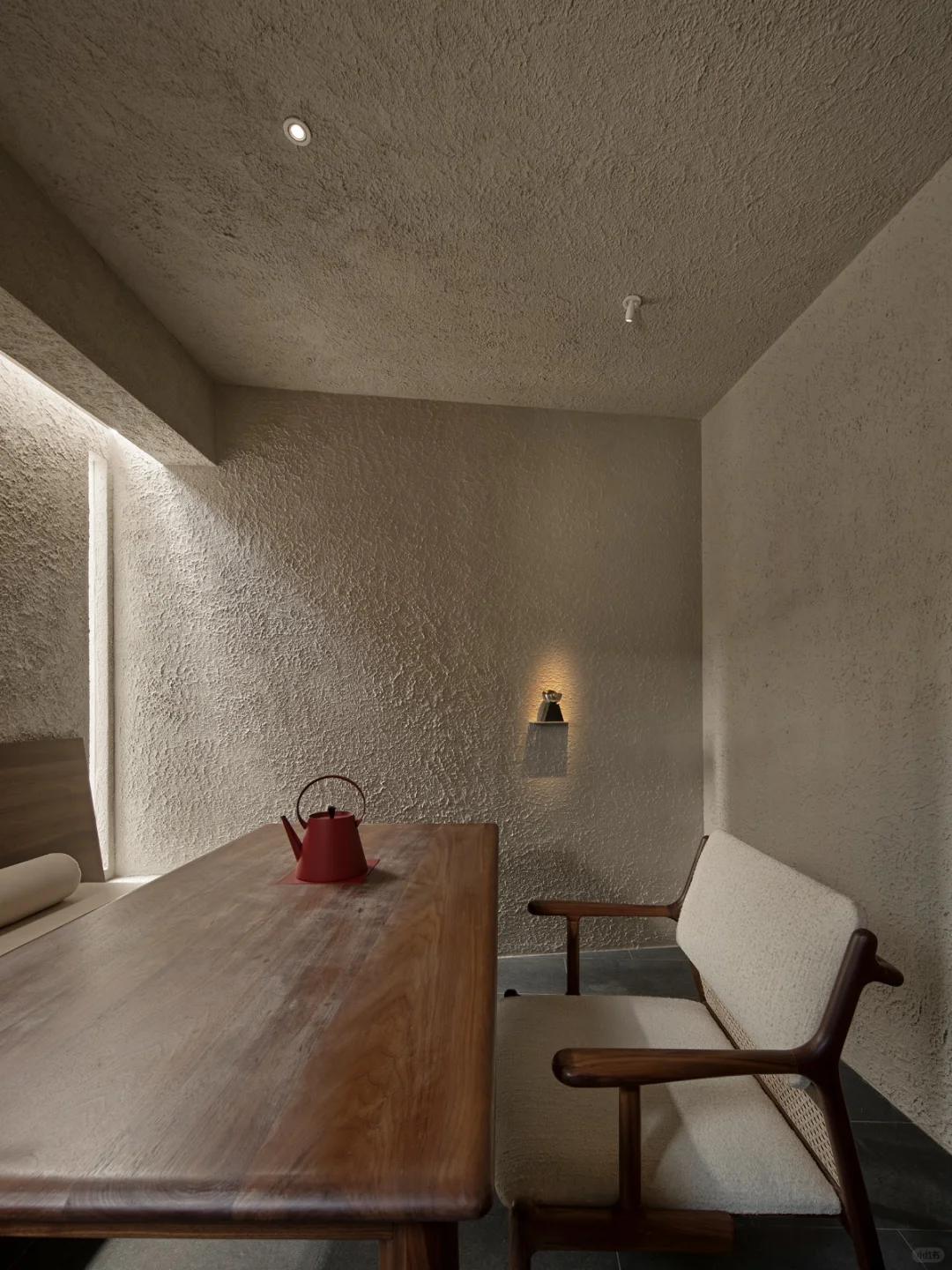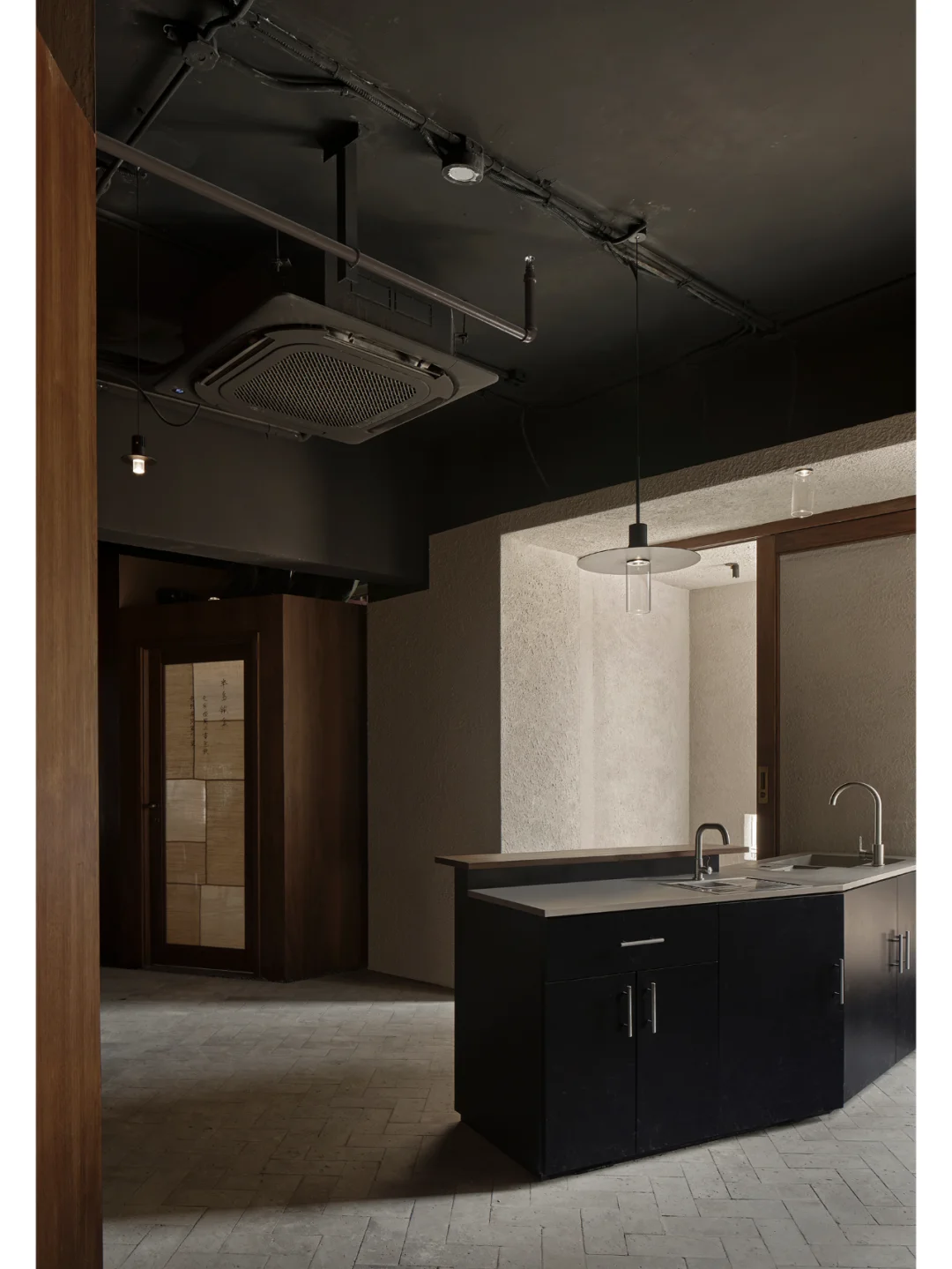 不同于多数中式茶室点单茶品的消费模式,十七间茶馆的商业想法是将空间作为载体售卖“品茶时间”。阿巴斯·基亚罗斯塔米的电影《24帧》和意大利建筑师阿尔贝托·波尼斯的建筑语言是茶馆设计意向的来源。