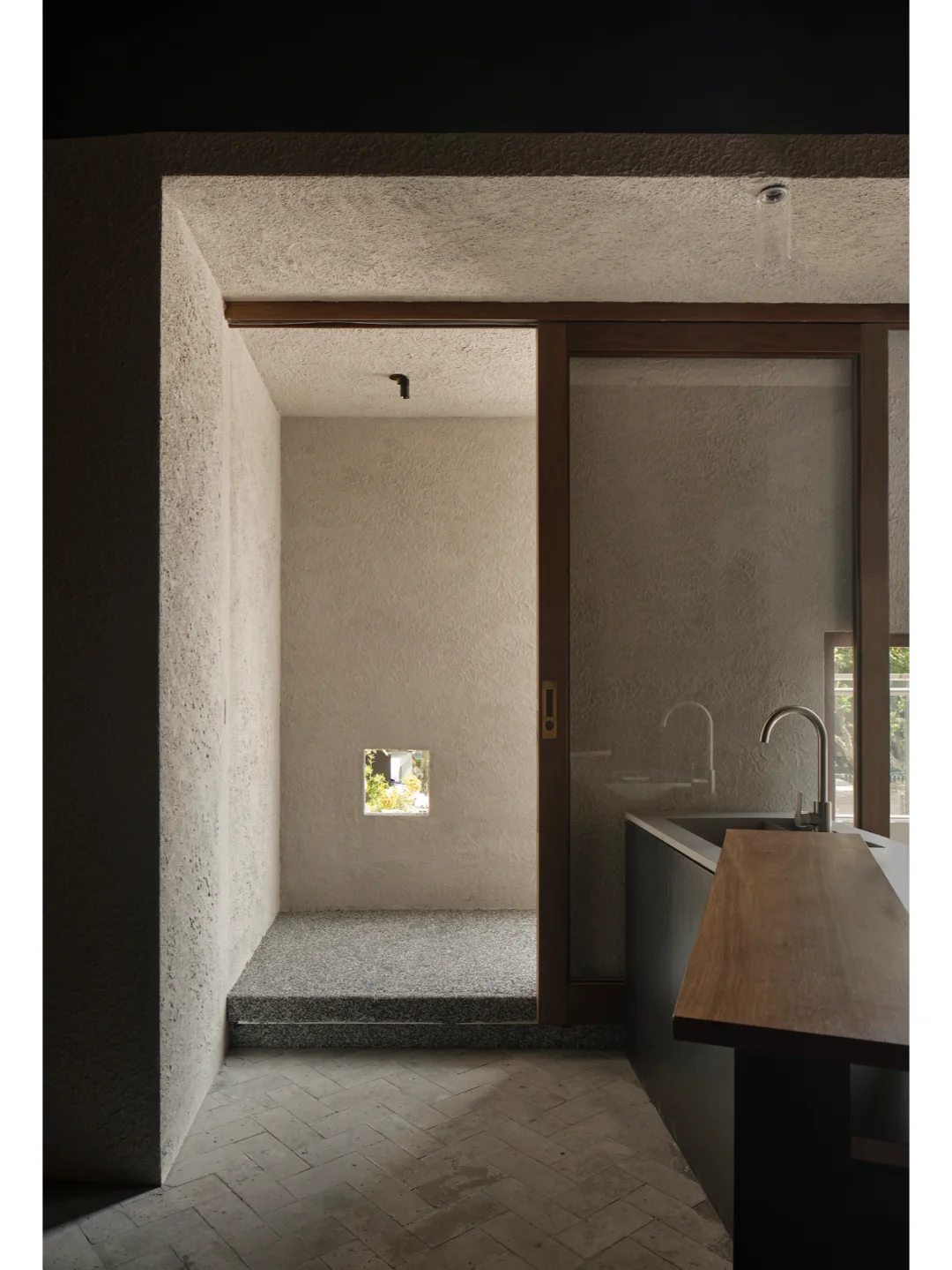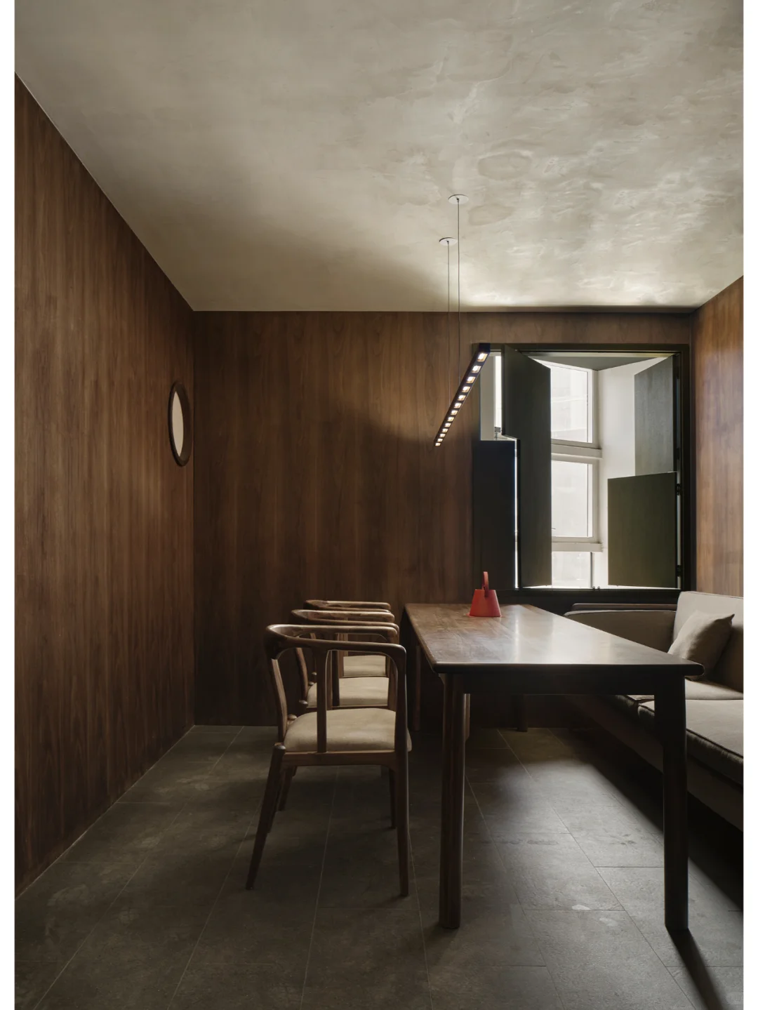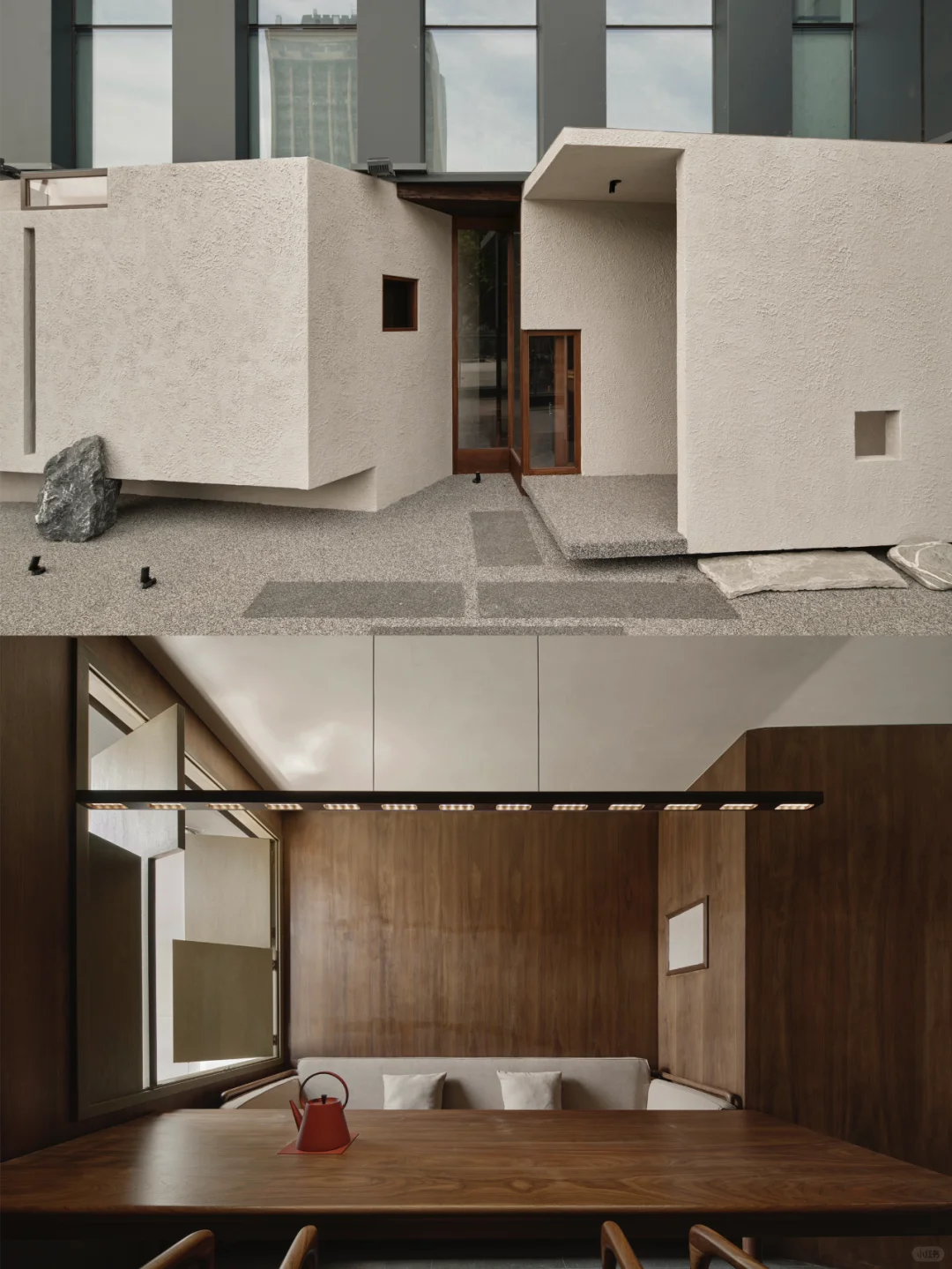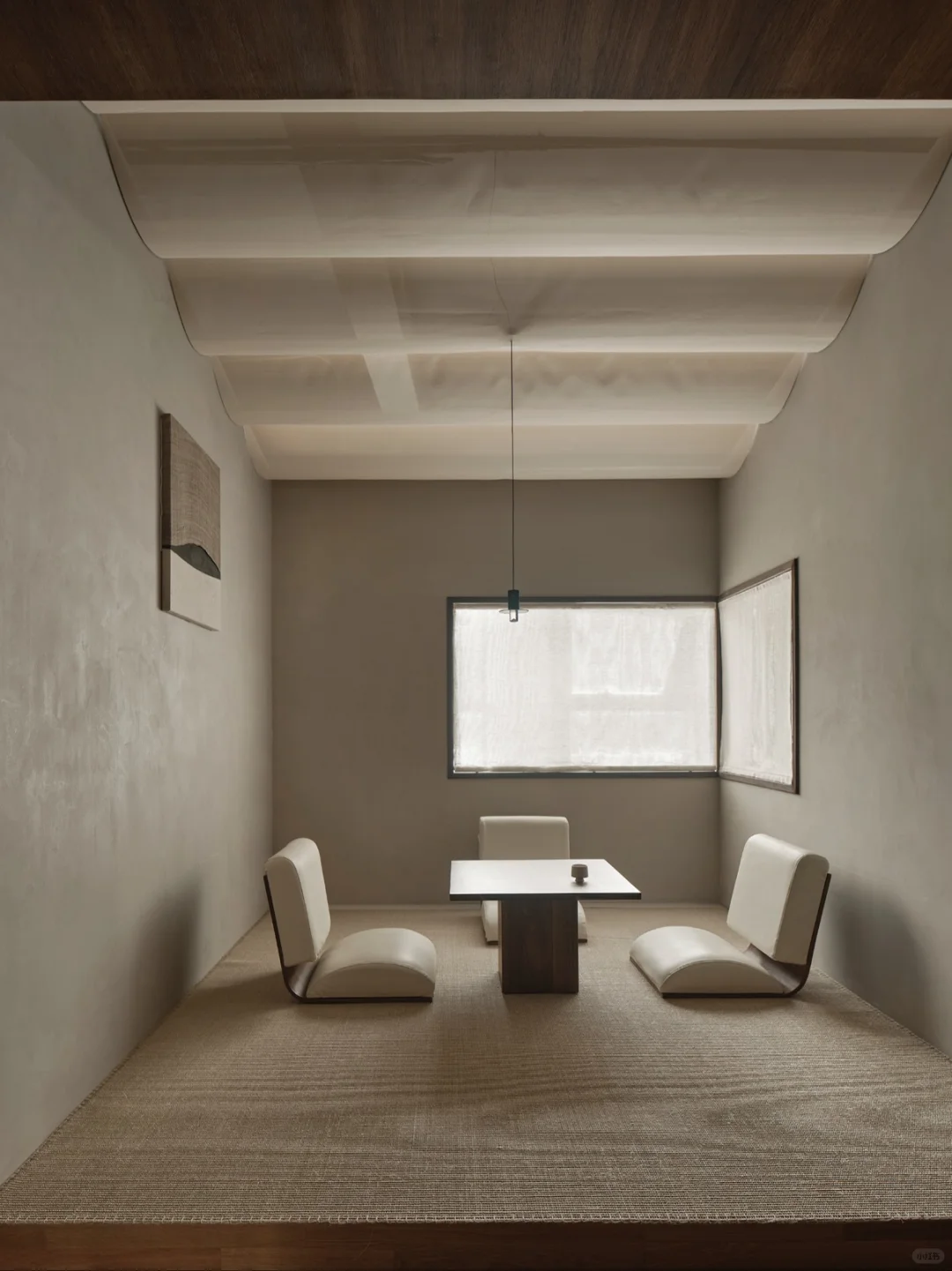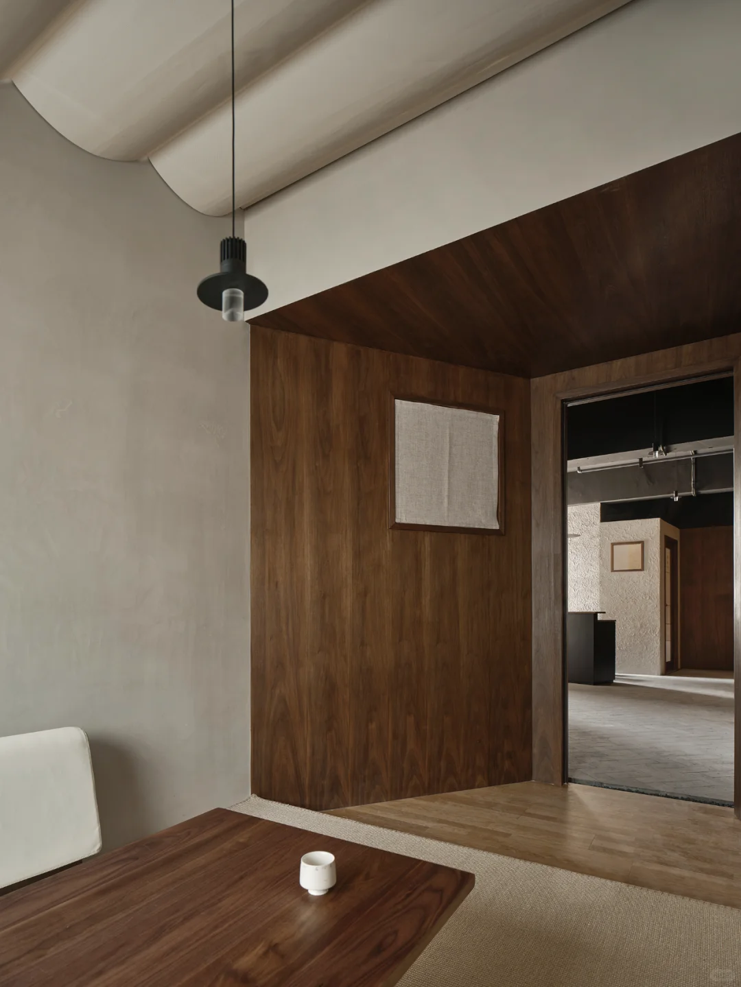 不同于多数中式茶室点单茶品的消费模式,十七间茶馆的商业想法是将空间作为载体售卖“品茶时间”。阿巴斯·基亚罗斯塔米的电影《24帧》和意大利建筑师阿尔贝托·波尼斯的建筑语言是茶馆设计意向的来源。