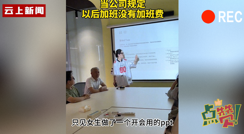 事情发生在一次公司例会上,当这位女生正在展示她的PPT时,突然,一个二维码出现在了屏幕上。这可不是普通的二维码,而是她精心设计的“付费解锁”环节。原来,面对公司新出台的无加班费加班政策,女生并没有选择沉默或抗议,而是巧妙地利用这次会议,向老板提出了她的“反制措施”。