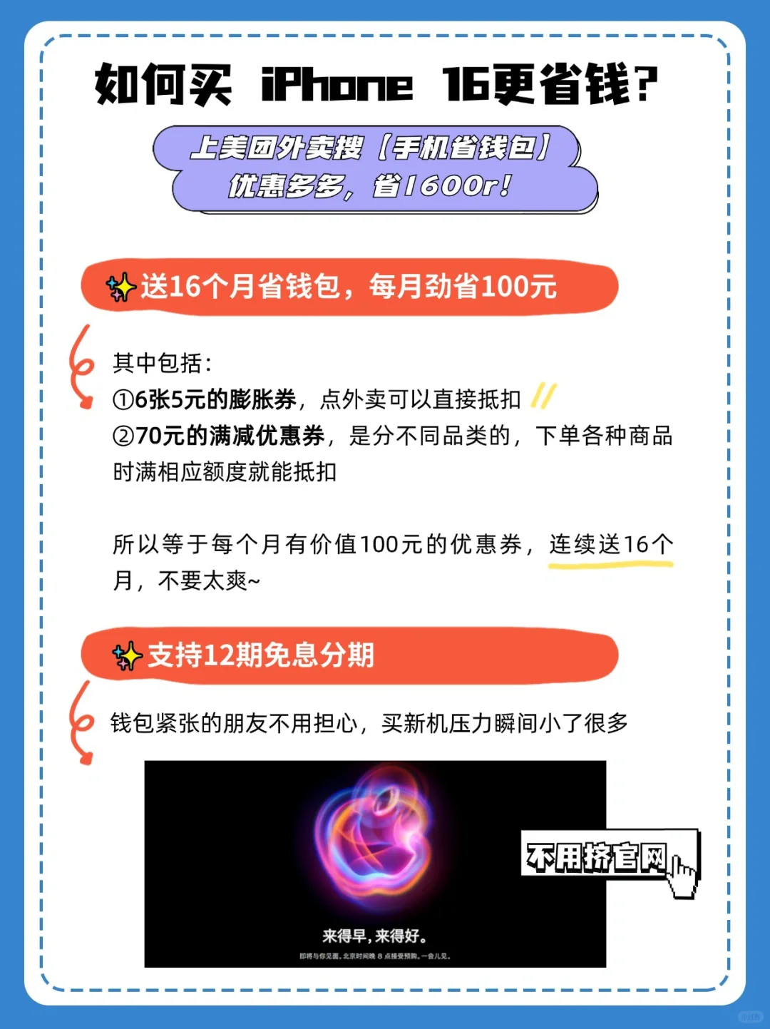 在美团外卖买 iPhone 16优惠多多,省1600r!