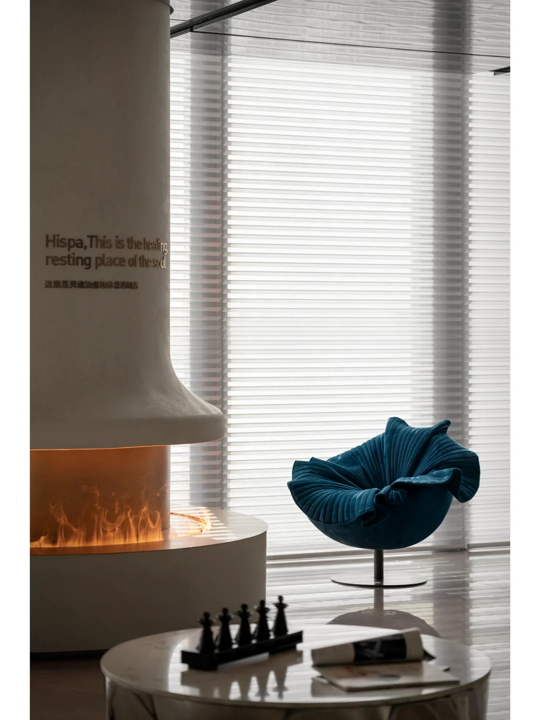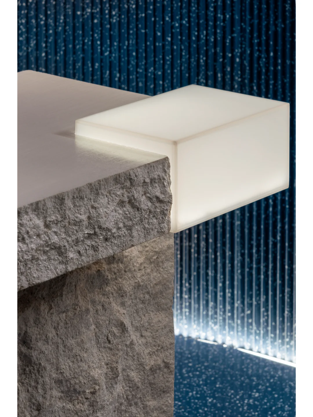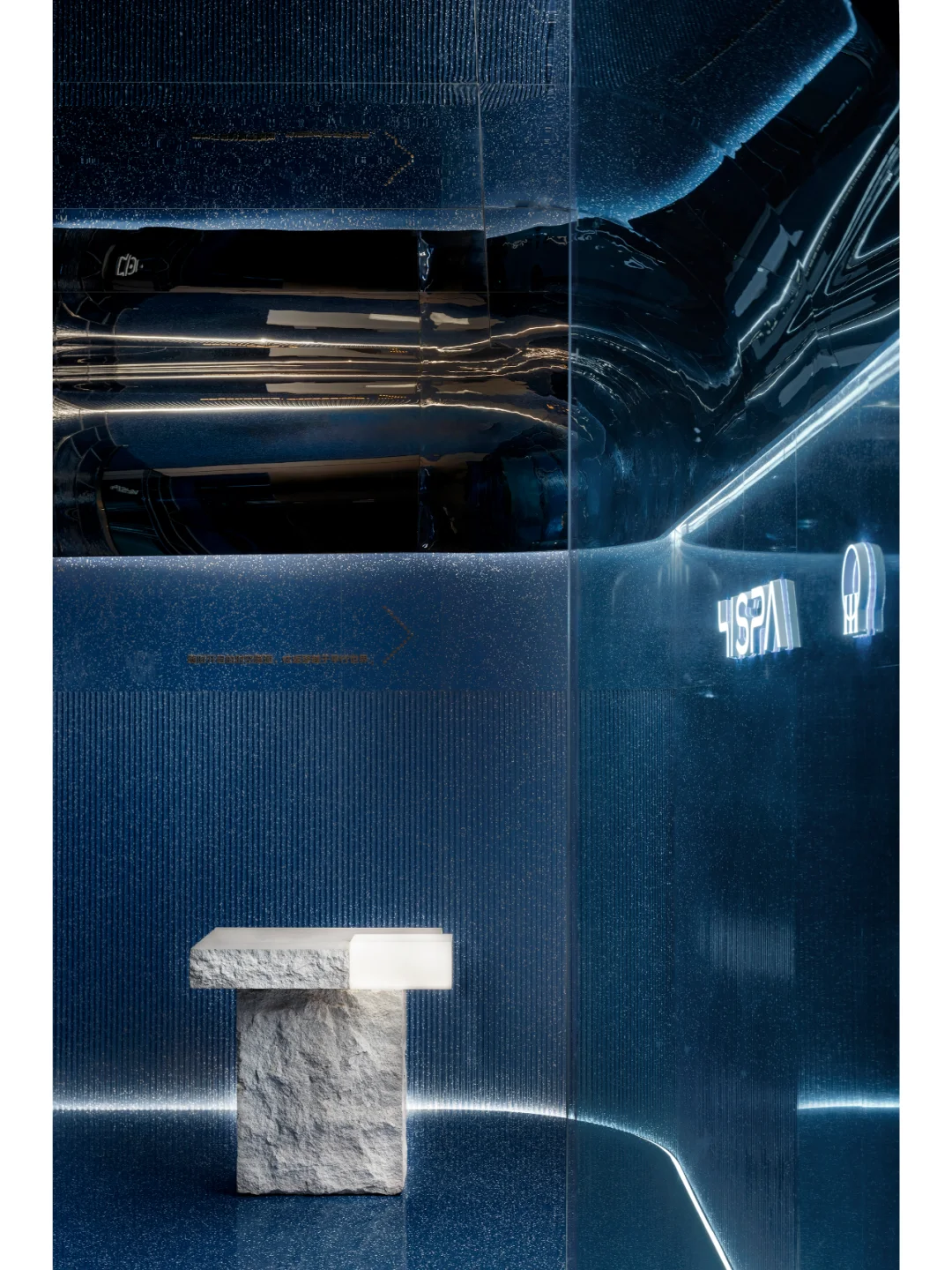 无时间痕迹的科技感材质饰面与自然系原石的粗粝肌理形成对比,光影映衬下的物理属性衍生出更加灵动细腻的艺术流光。