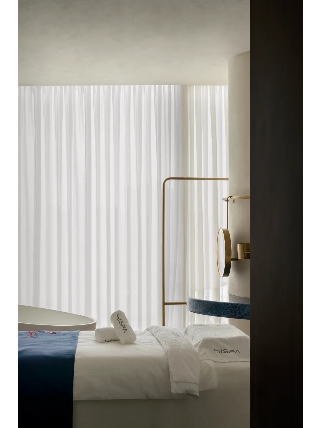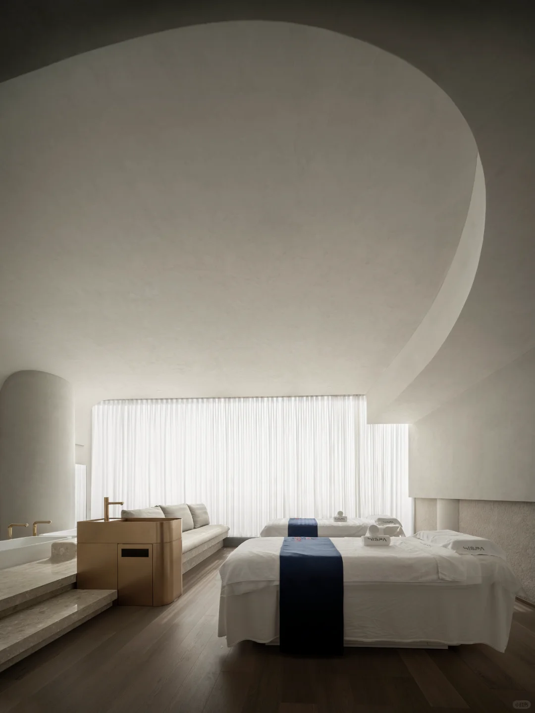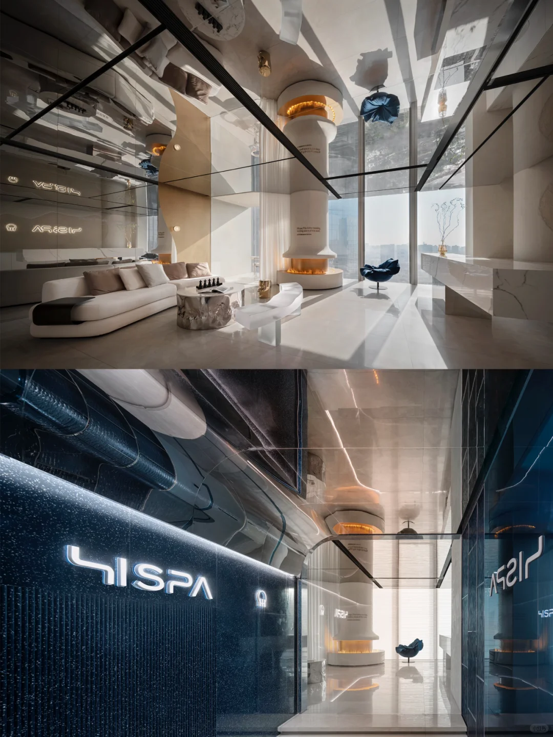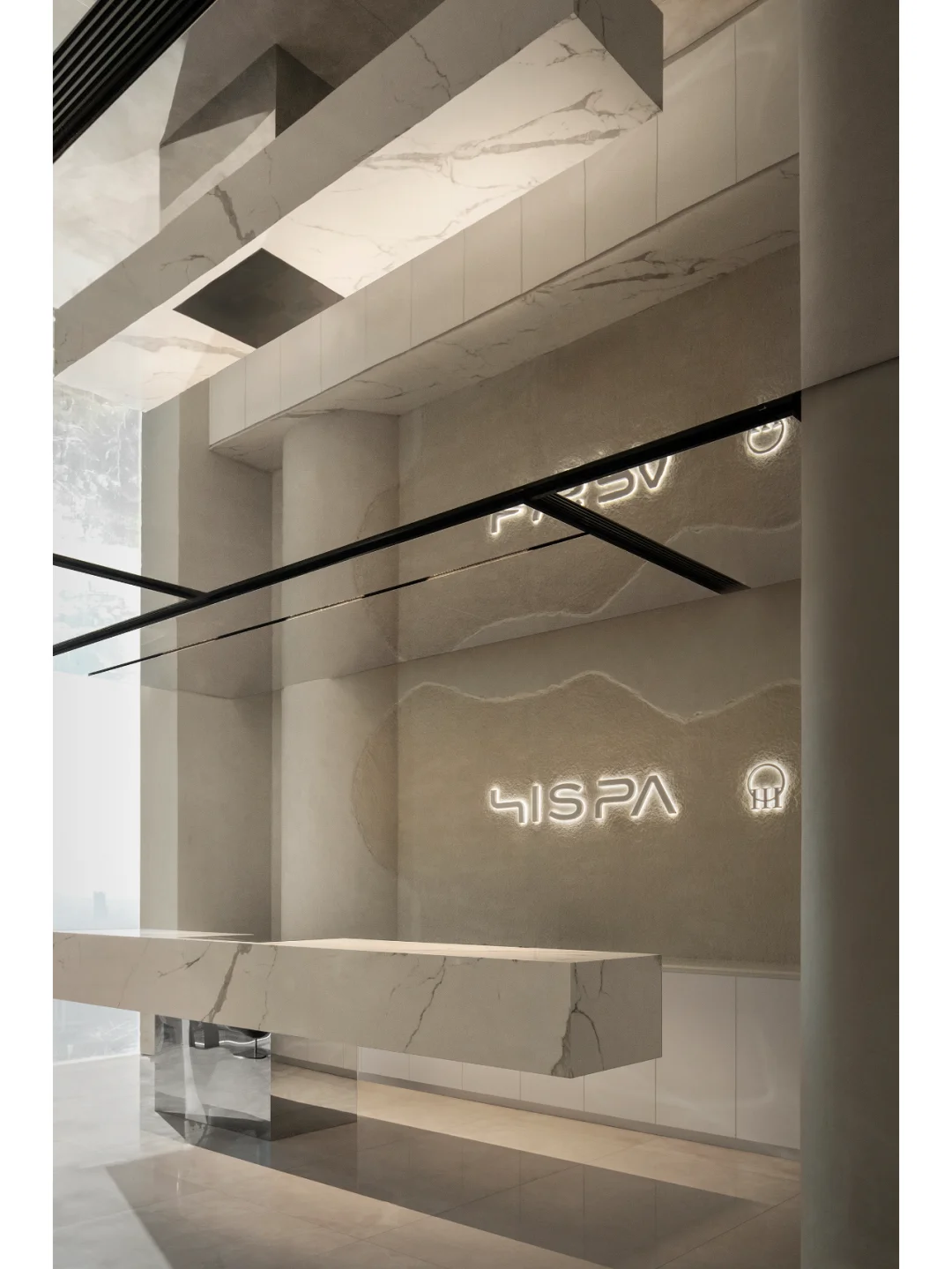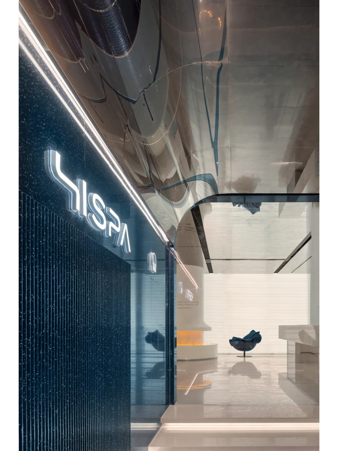 HISPA位于佛山,c.dd有限無界从“正向影响消费者身心灵感受”的人文价值原点出发,结合在地性的环境背景考量与全球化的商业趋势洞察,将可感可触的品牌印记精准定义为“50%的潮酷+50%的温柔”,营造差异化的空间体验。