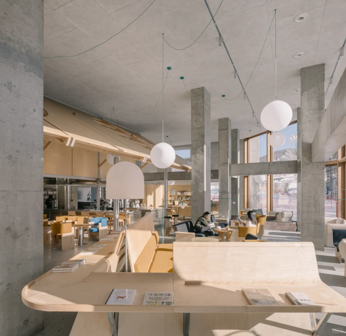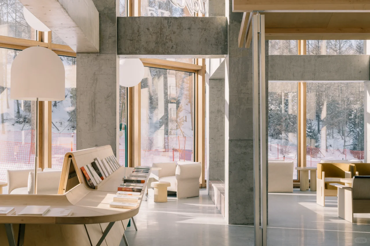 西涛设计工作室为naïve理想国设计了一个在雪场上的书店,坐落在阿那亚崇礼。与设计一个城市的楼房里的书店不同;设计团队想象一个冰天雪地中的书店,跟景观、气候和自然是融合渗透的。