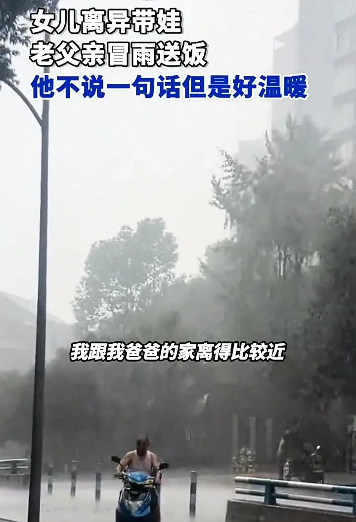 看到这名女子的父亲冒着大雨来给她送饭的场景,真的令人感到泪目。虽然他已经70岁了,但心里仍然牵挂着女儿,怕她离婚后独自带娃会很辛苦,便宁愿让自己辛苦一点,坚持每天给她送饭,这种默默无闻的父爱,实在让人感到温暖。大家怎么看呢?