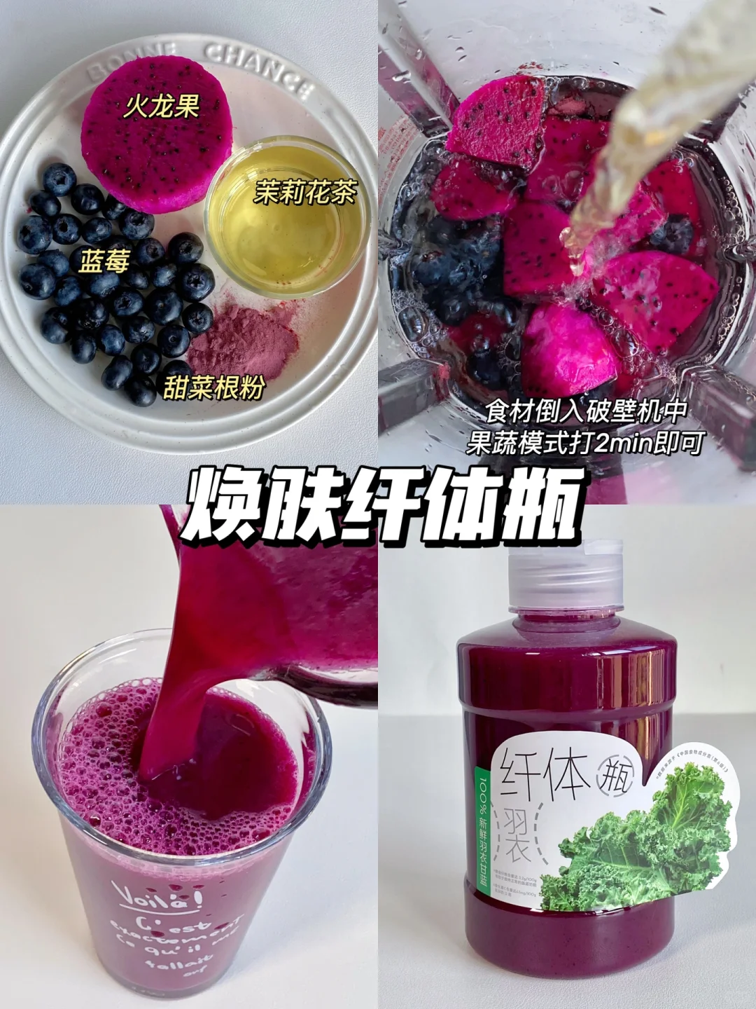 食材: 火龙果➕甜菜根➕蓝莓➕茉莉(绿妍)茶汤