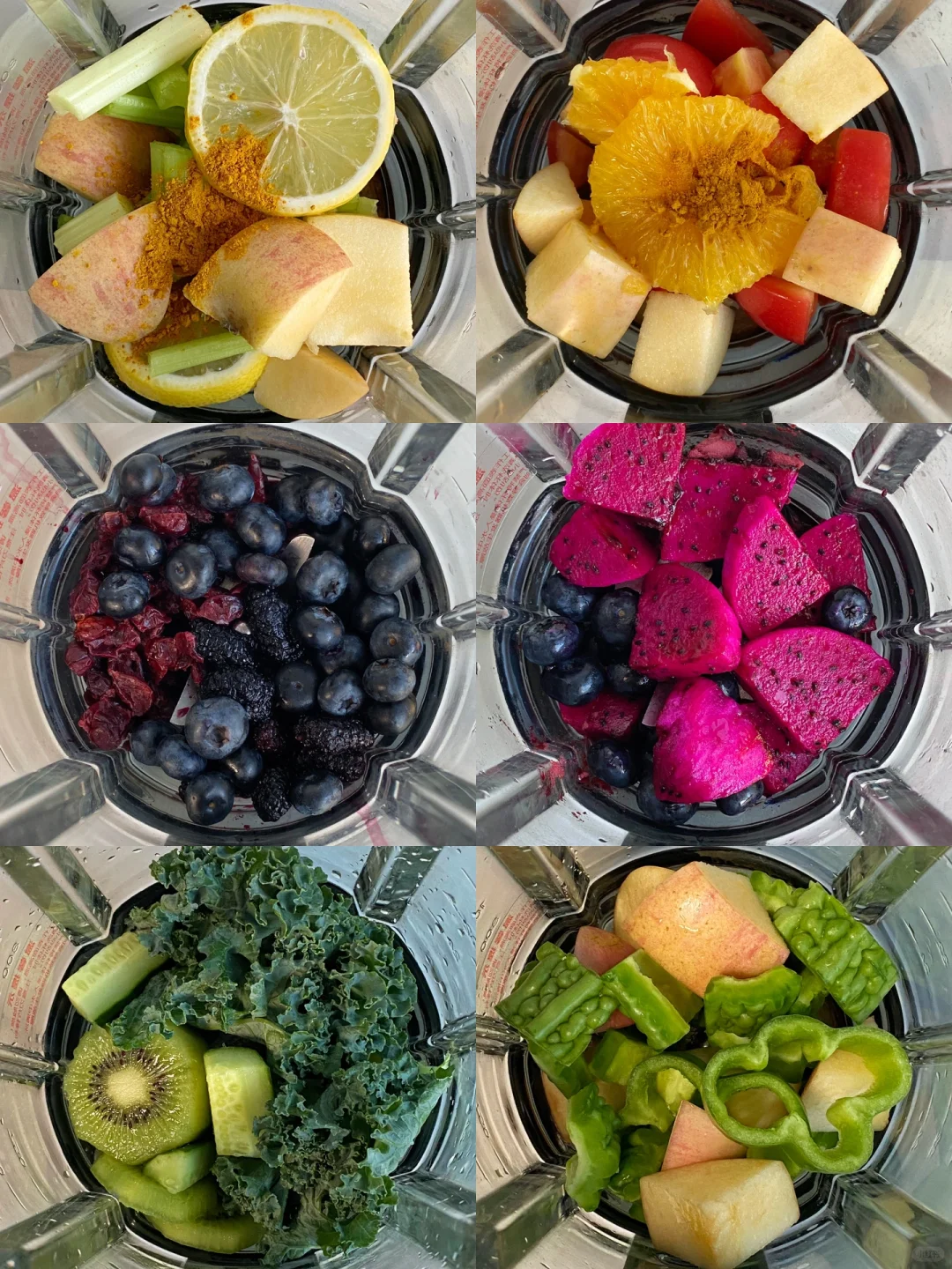 食材:番茄➕橙子➕苹果➕姜黄粉➕胡萝卜➕茉莉(绿妍)茶汤