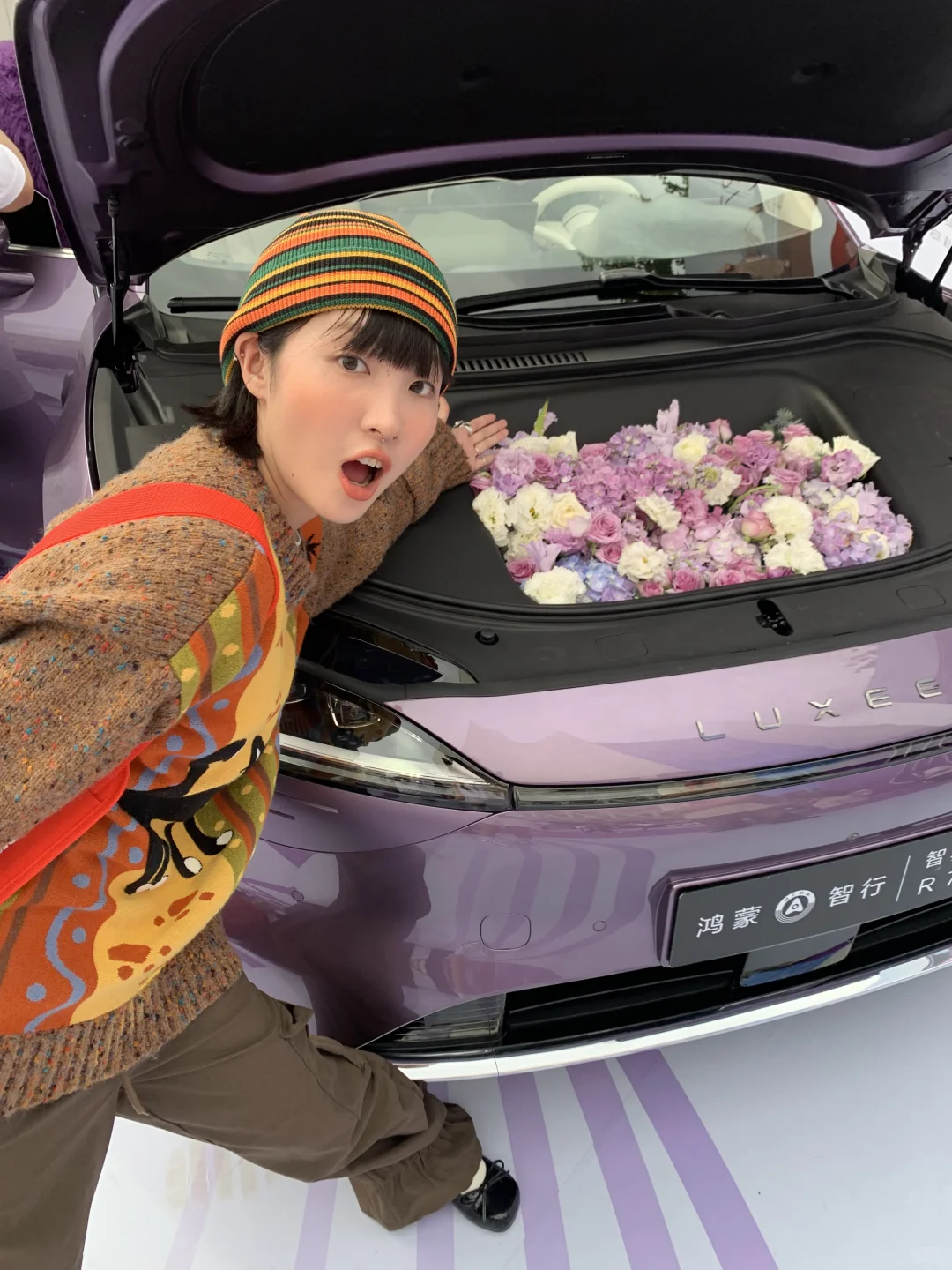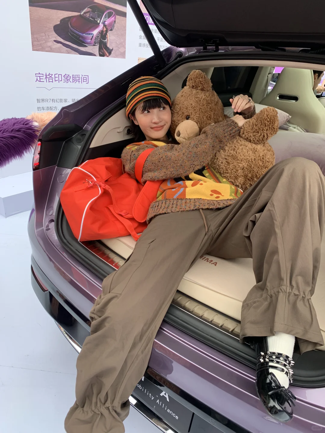 还有KK电吸前备箱 敲两下它就自动打开啦 好神奇!副驾驶零重力座椅💺不要太舒服!