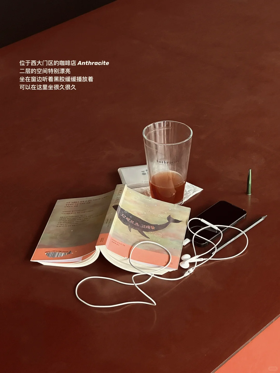 位于西大门区的咖啡店 Anthracite,二层的空间特别漂亮,坐在窗边听着黑胶缓缓播放着