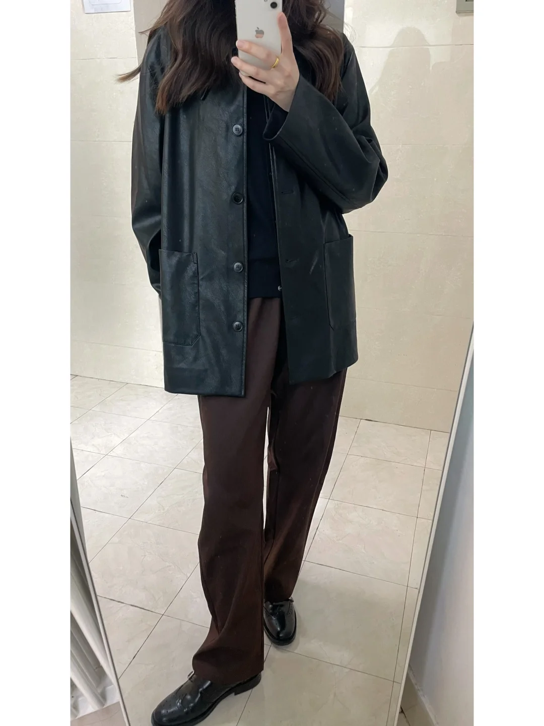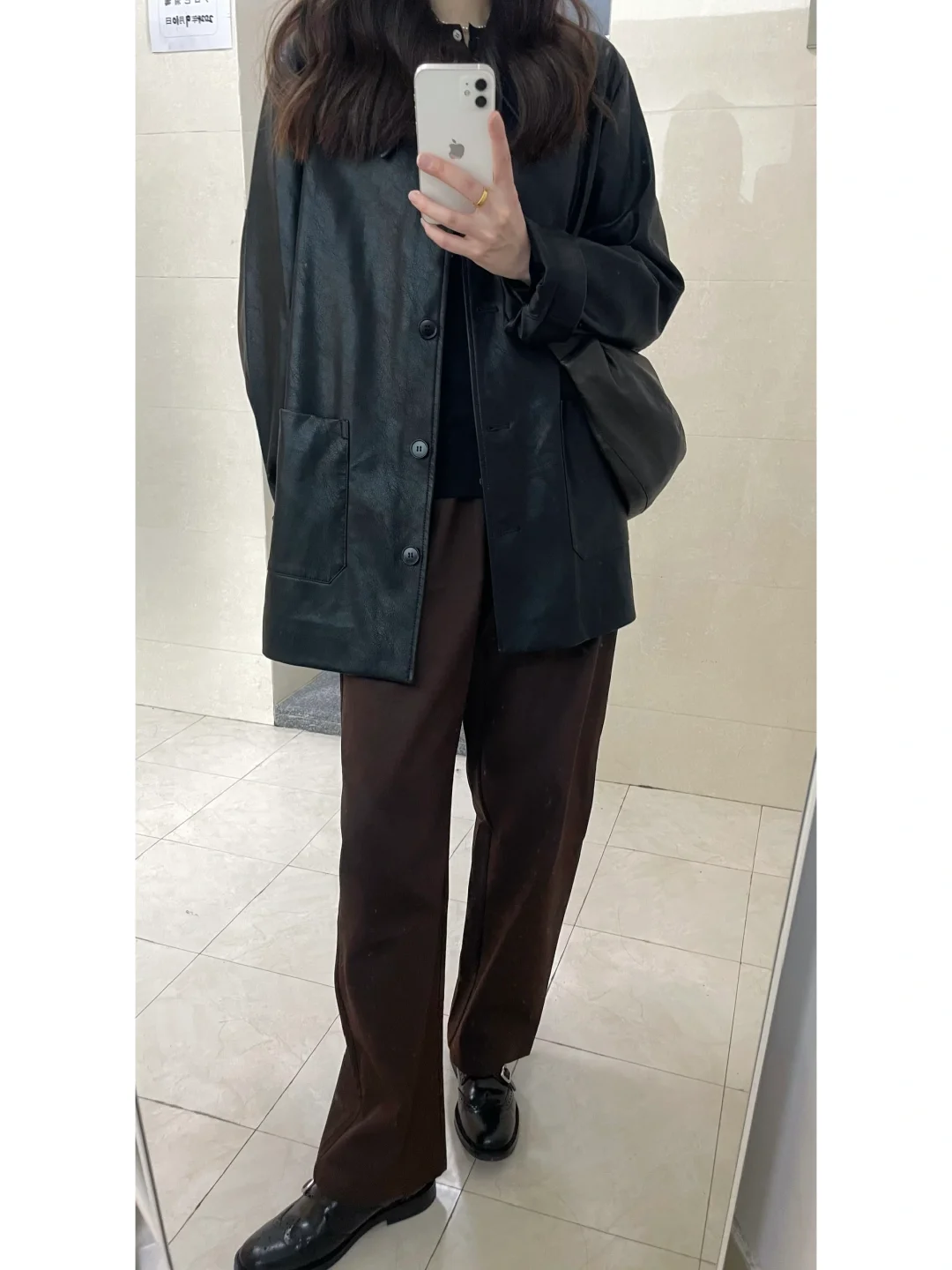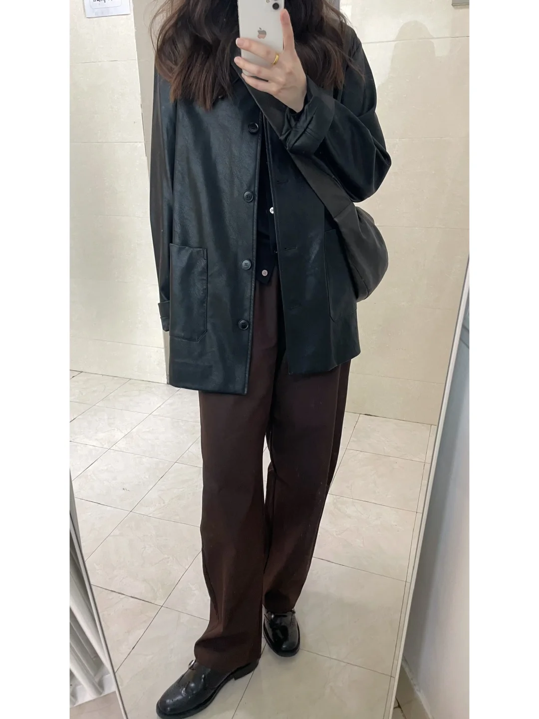 皮衣 cleanfit简单出门 极简穿搭 Ootd 通勤穿搭 早秋出门这么穿皮衣穿搭