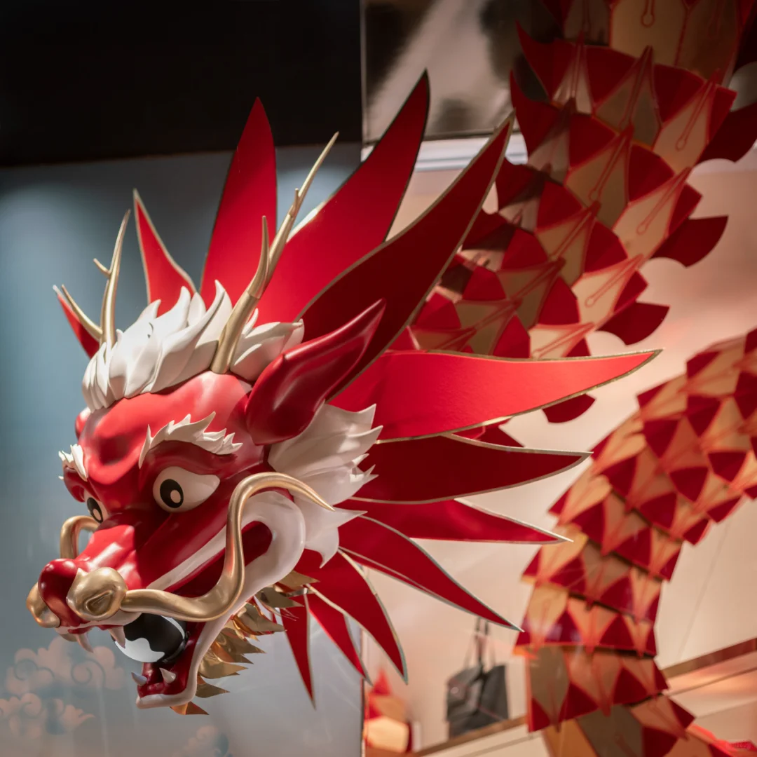 设计团队将龙作为空间中的英雄角色,赋予其生命力和活力。通过动画化的手法,龙在商店周围自由地穿梭,从一个窗口无缝地跃至另一个窗口,仿佛在诉说着一个关于好运和力量的故事。