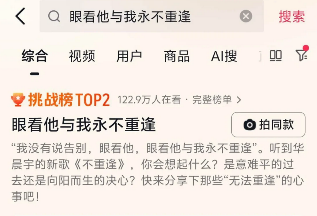 这首歌刚发布在抖音不久就爆火了,冲到了“挑战榜”第二名,实打实的业绩和水准证明了“唱作歌王”华晨宇在华语乐坛不了替代的影响力!