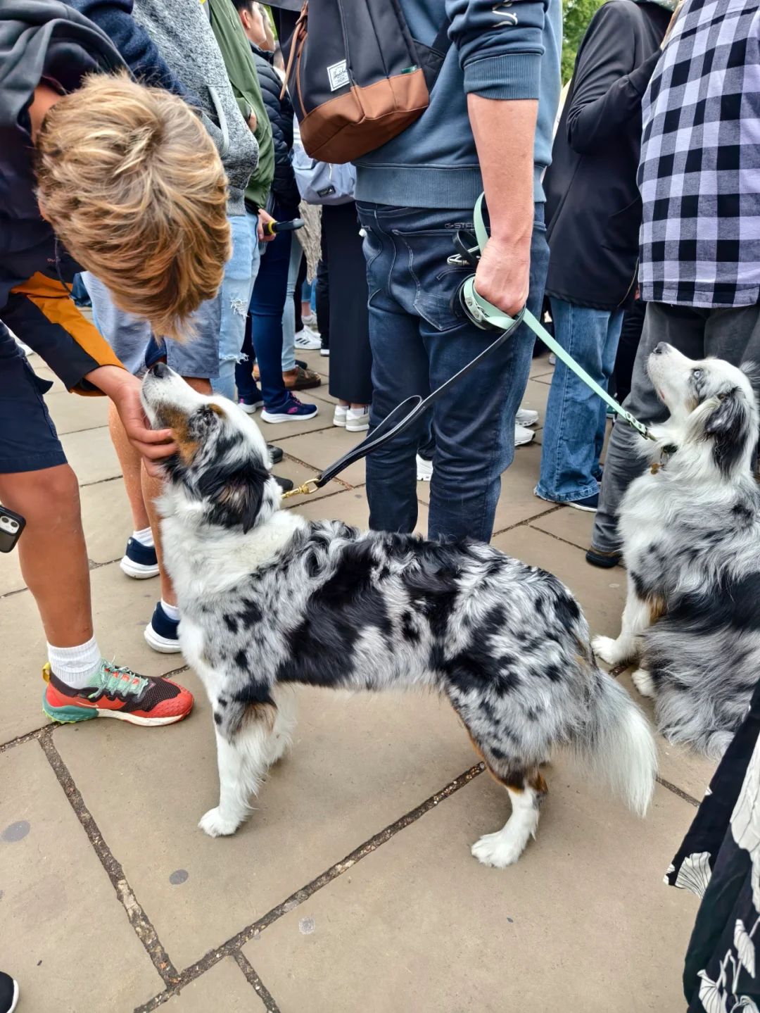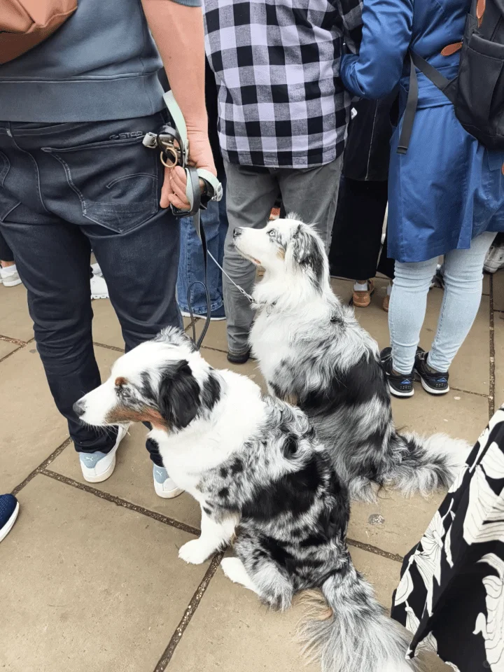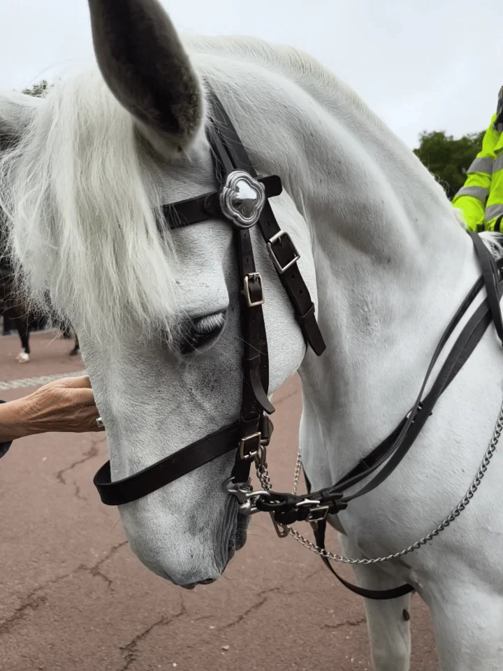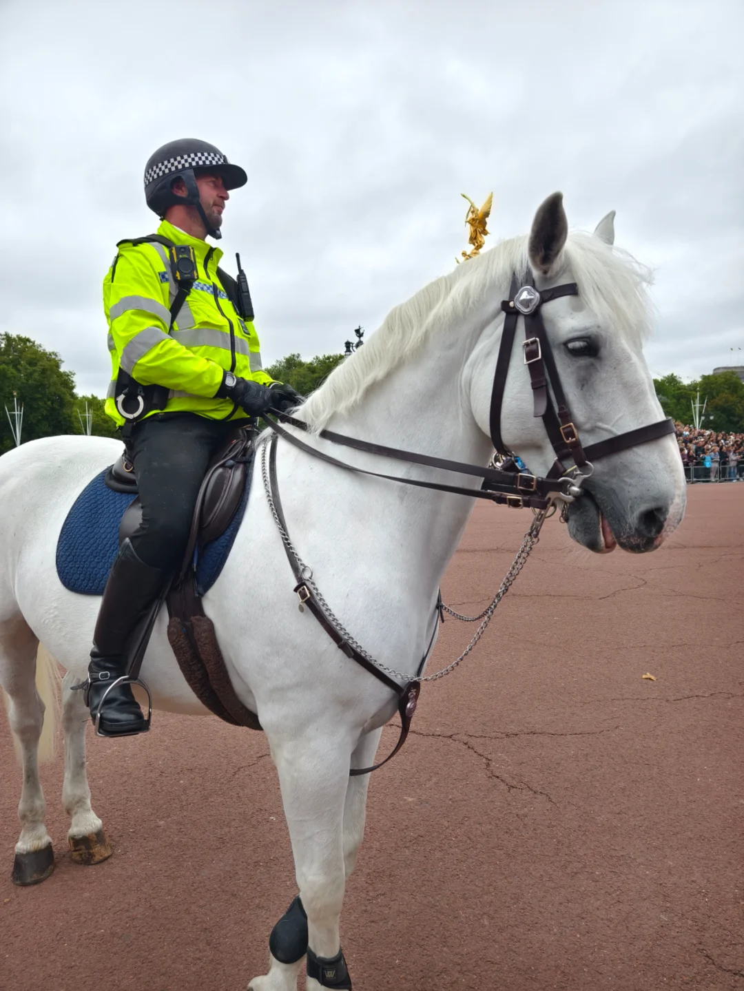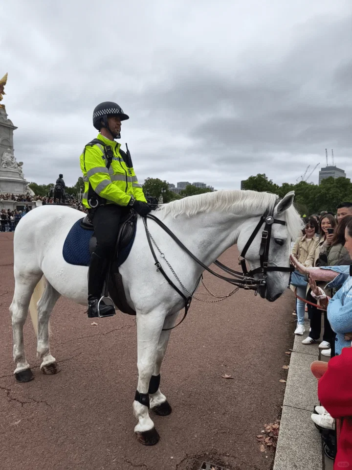 🔥游伦敦,白金汉宫皇家卫兵换岗仪式是必看项目之一。 🔥人山人海,遇到了友善的白马和狗狗,路人争相抚摸他们。两只狗狗中有一只对主人真是忠心耿耿啊,目不转睛看着主人。