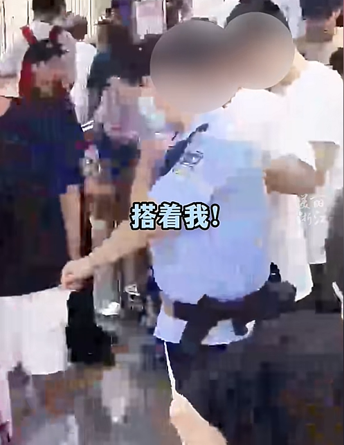 3个小伙是刚游览完西湖,准备乘坐地铁回家!本来地铁里也是有盲道的,可是,当时正是高峰期,人流量非常大,盲道也是被占据了,3个小伙一时之间找不到方向了,只能待在原地!辅警董学磊看到他们后,就产生了怀疑,上前询问得知是视障人士后,他让前面的小伙搭着自己的肩膀,自己带他们去坐地铁。
