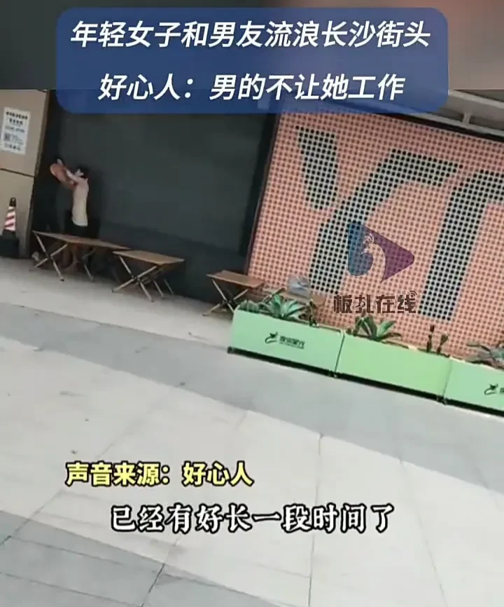 9月18日,湖南长沙一名网友发视频称,自己在街上看到一个年轻女子和男友流浪,两人也不工作,饿了捡东西吃,困了睡在大街上。据知情人透露,曾给女子找过工作,月薪四五千,但男友不让她工作。