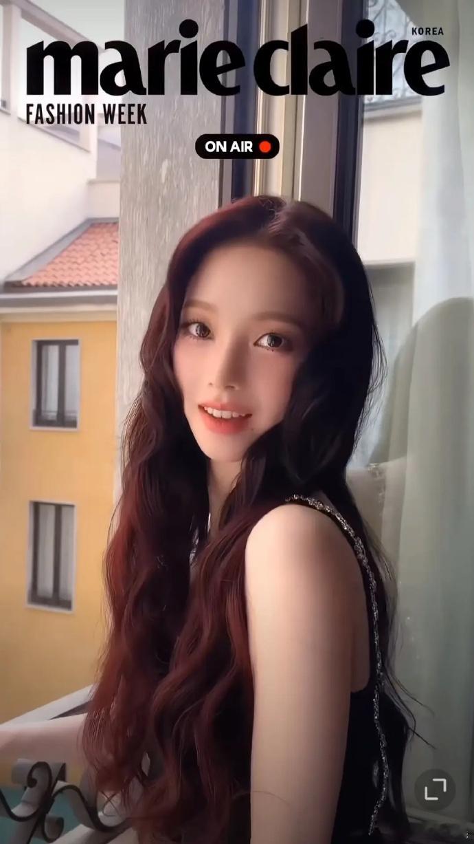 #柳智敏酒红色卷发造型##柳智敏亮相米兰时装周#柳智敏在米兰时装周上的酒红色卷发