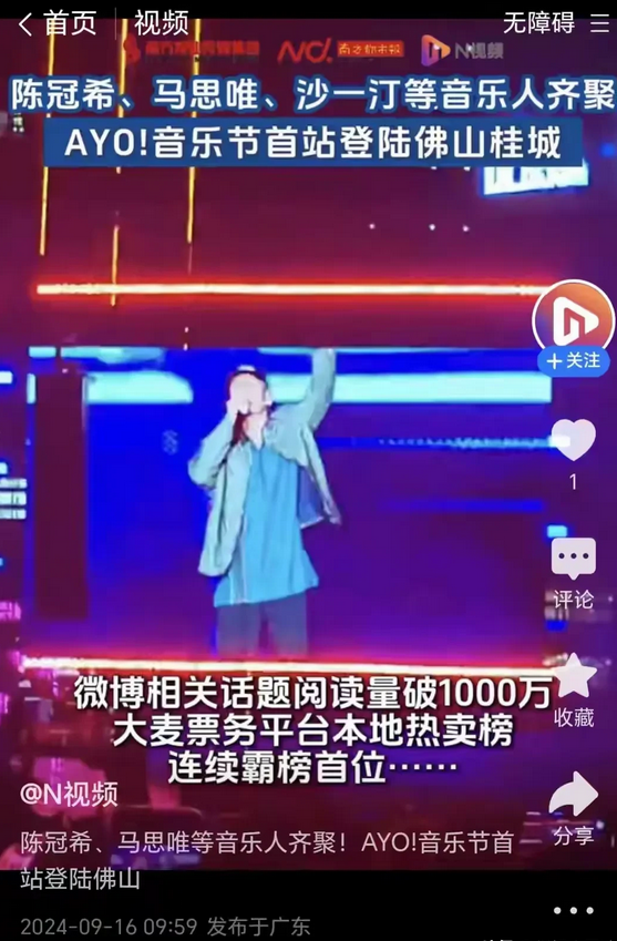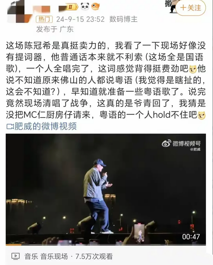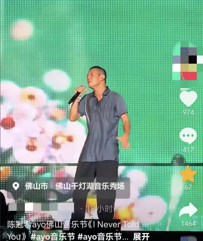 牛呀!44岁陈冠希以歌手身份参加佛山音乐节,连续霸榜首位! 全场国语歌,一个鸡冠