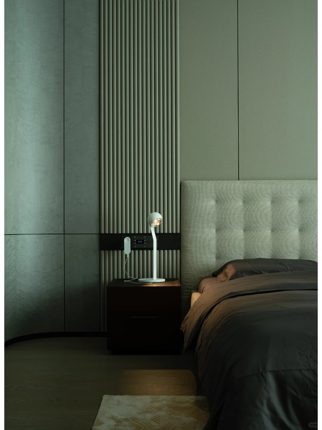 平衡业主夫妻及孩子的喜好,将材质、肌理、光线、结构进行秩序排布,用建构的设计方法,将原本两居室的布局改为四个套间及公共活动区,让整个家的布局更适合两代人居住好,通过功能指向美学。